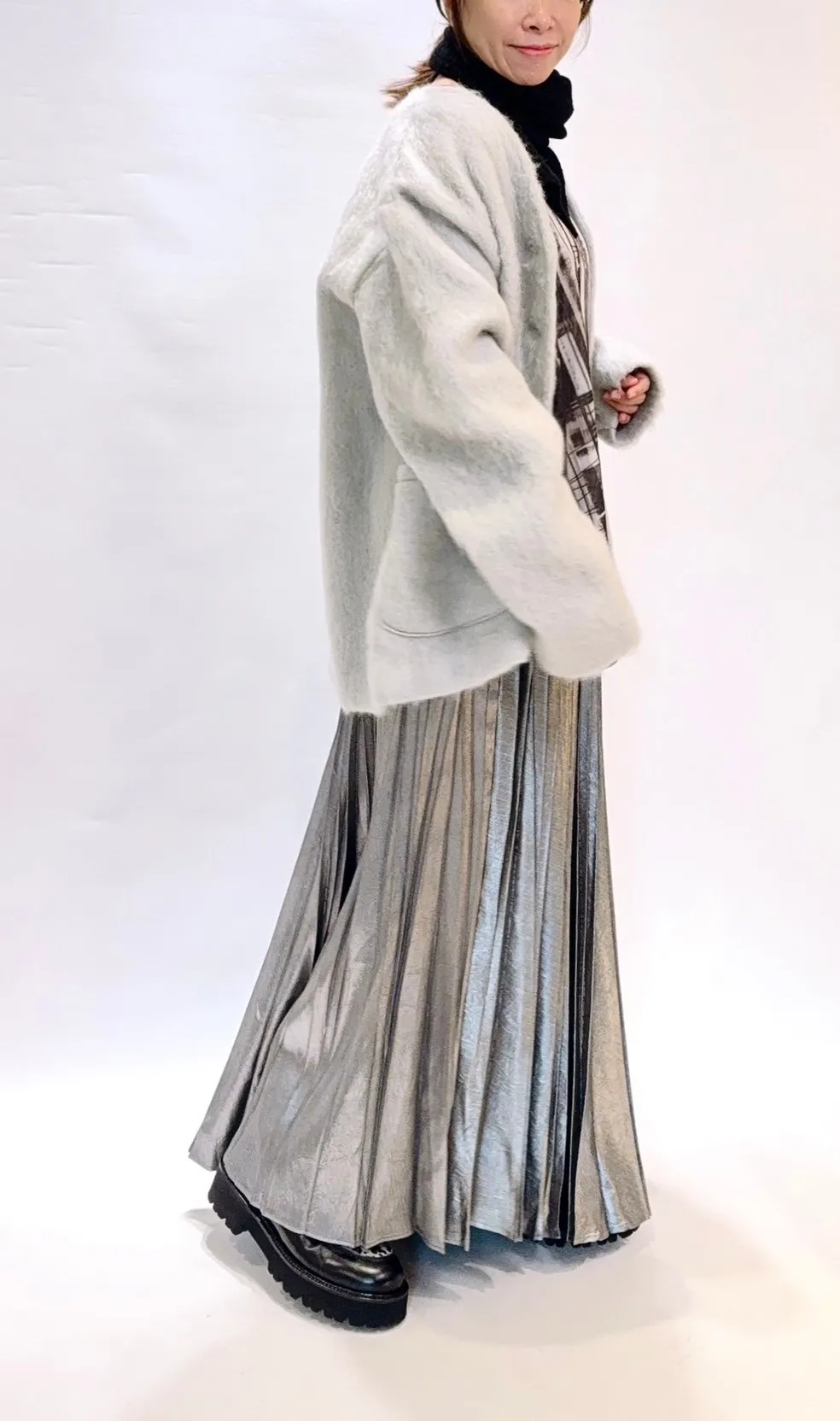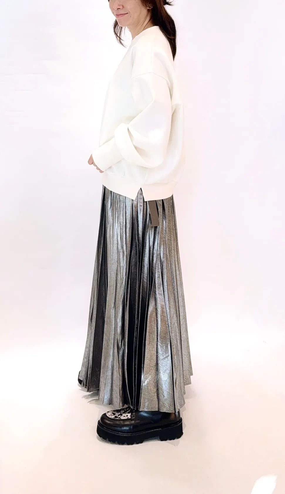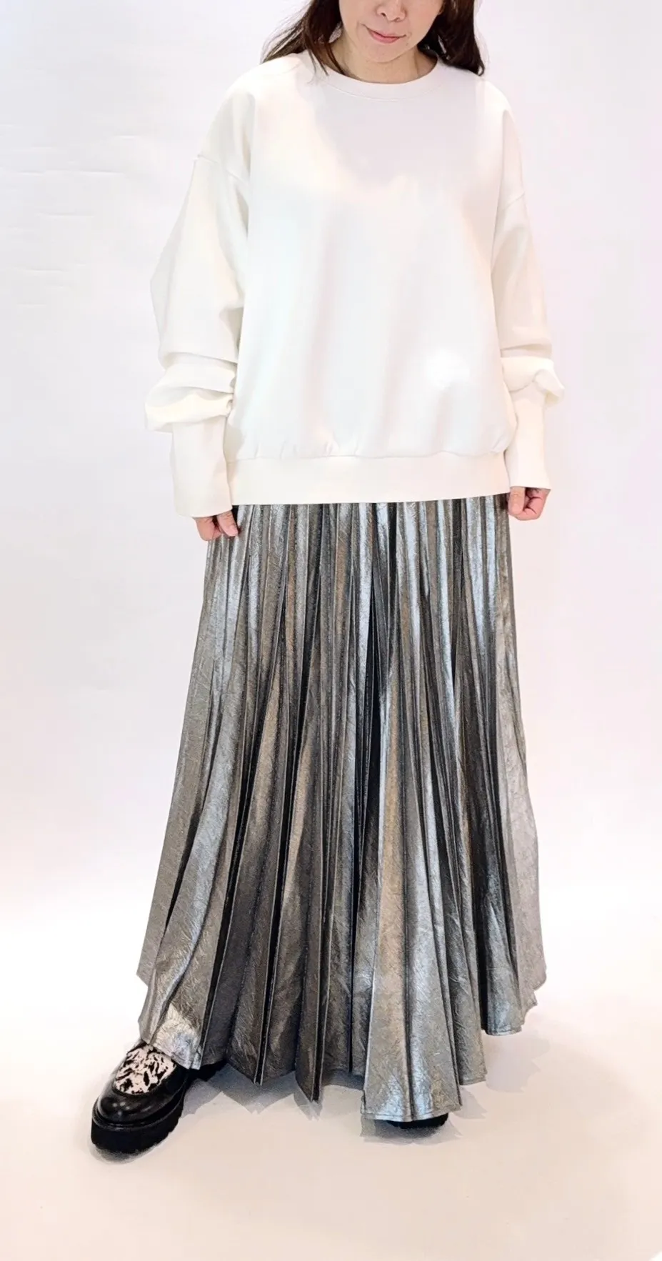 金屬光澤鬆緊百褶裙