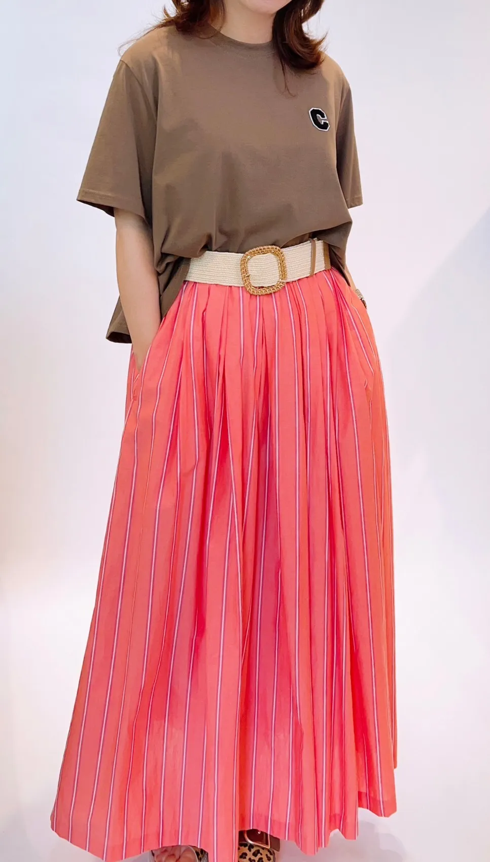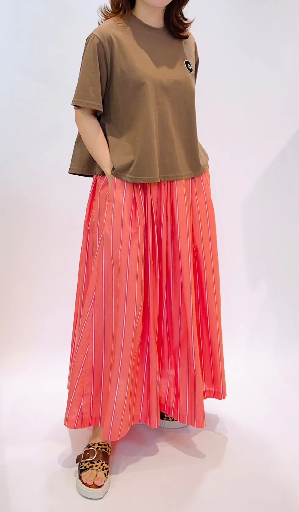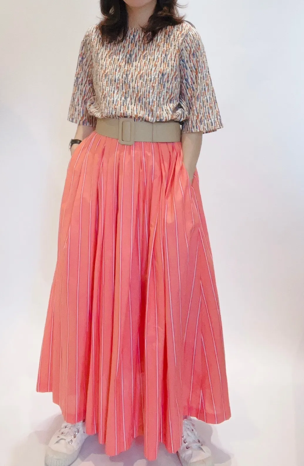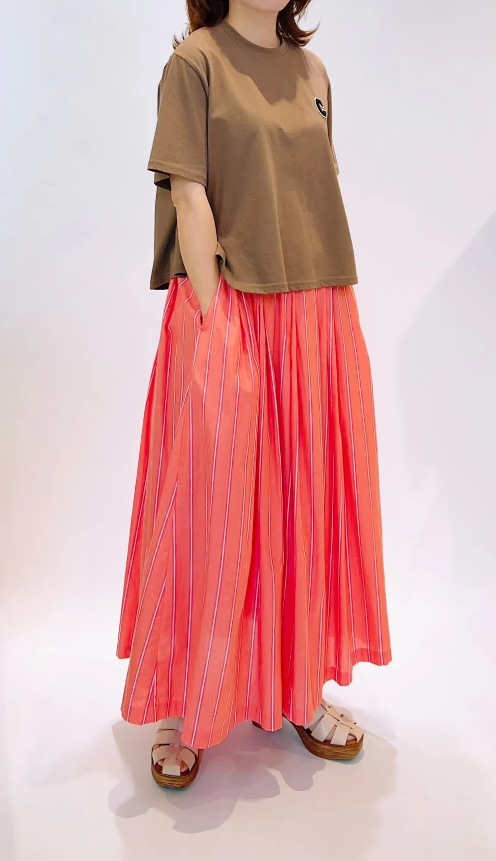 直條棉紗裙