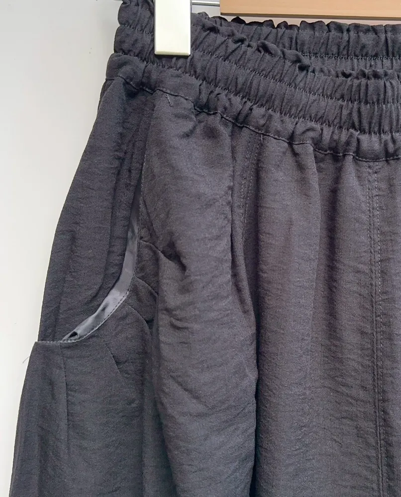 口袋抓皺繭型褲