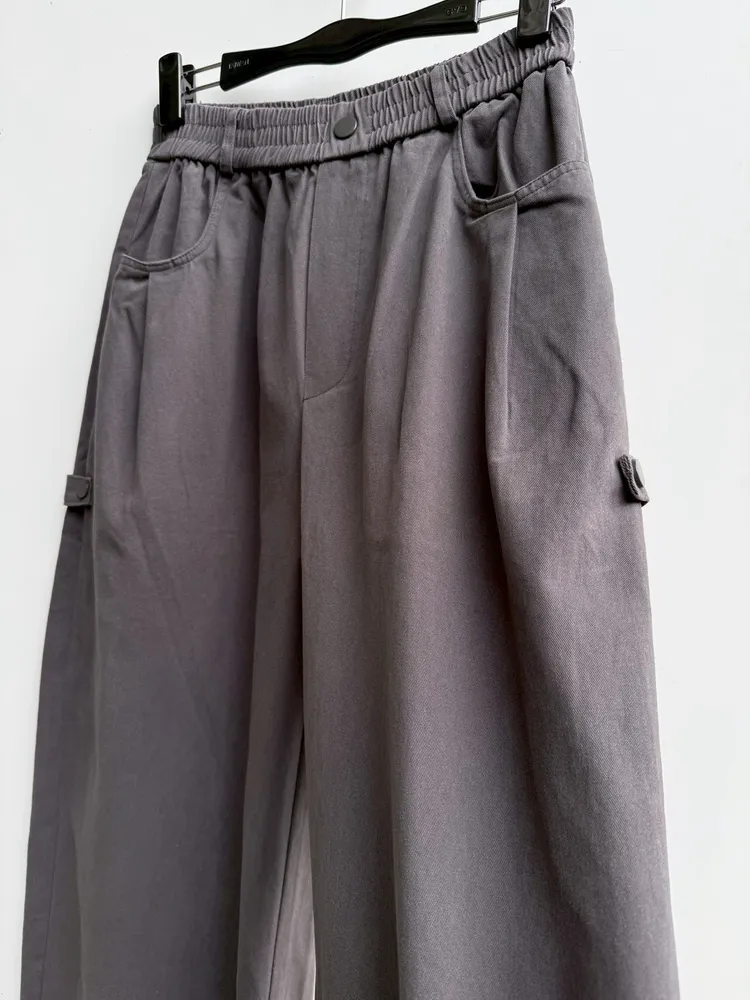 側釦設計繭型寬褲