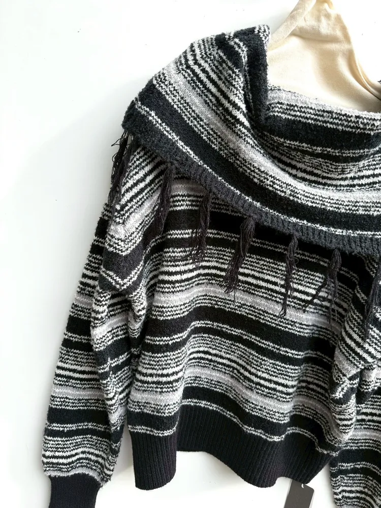 多邊領巾針織花紋針織衣