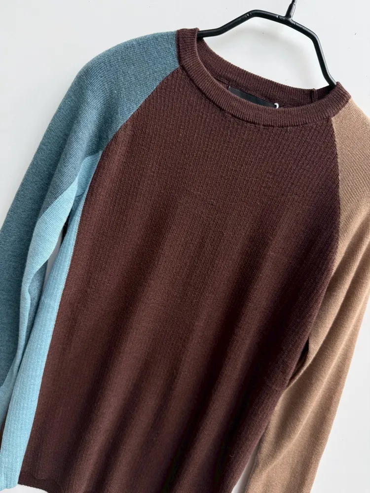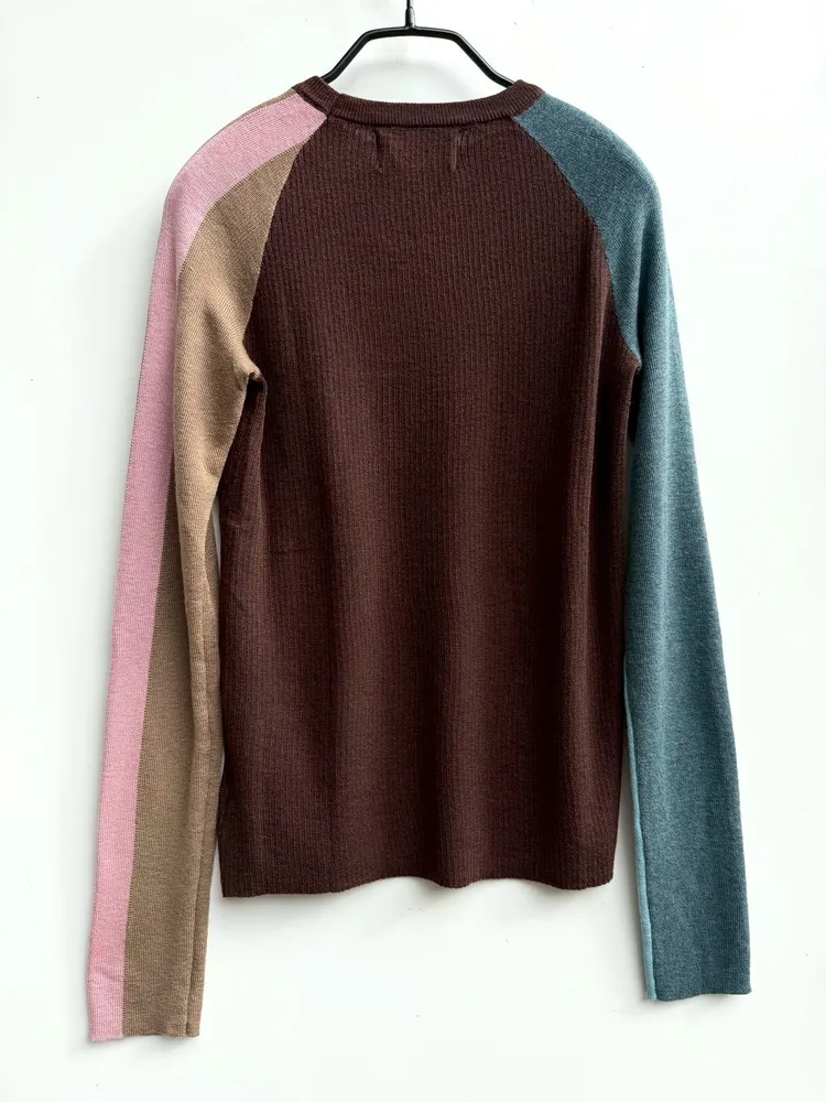 多配色款薄坑紋針織上衣