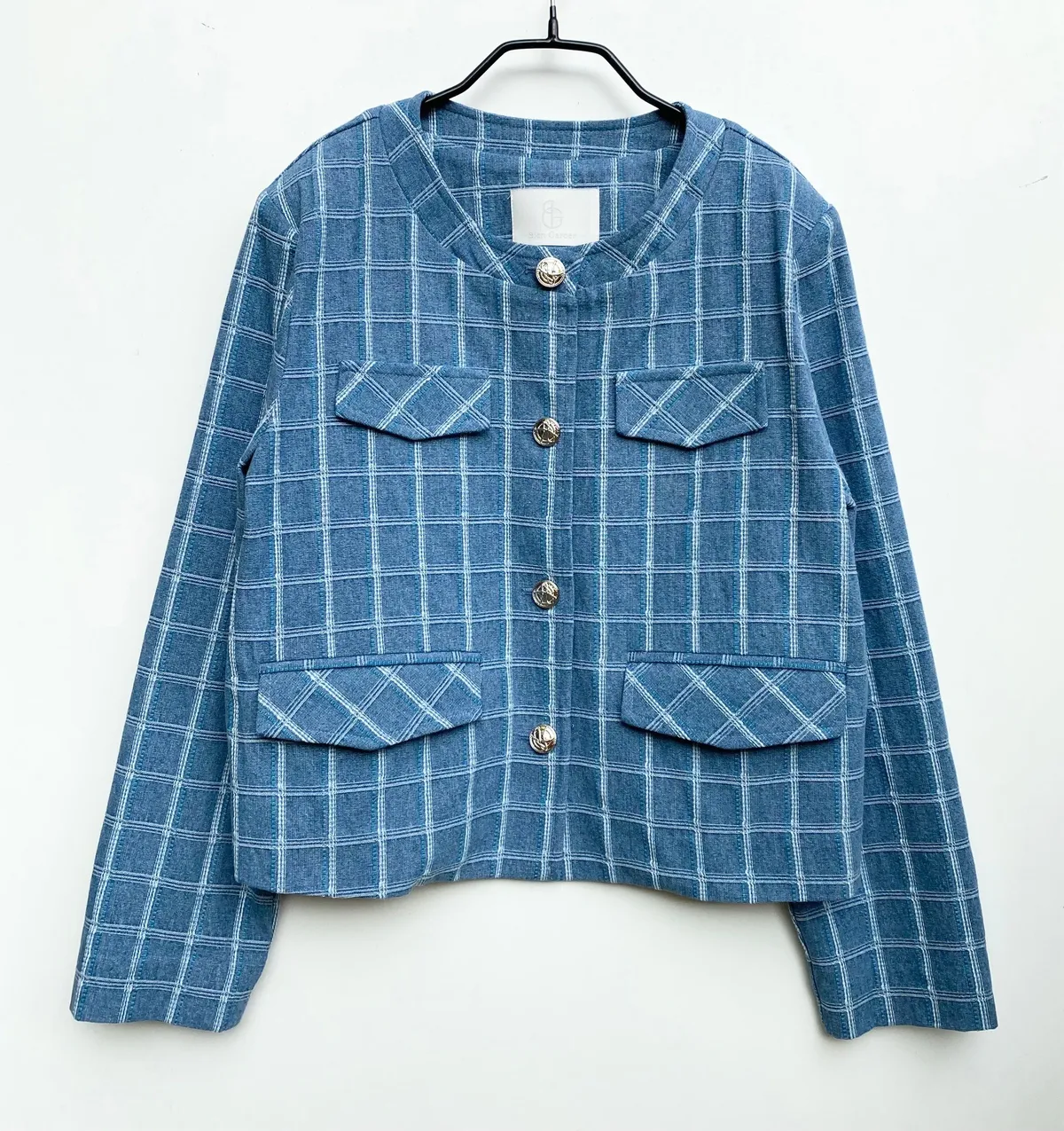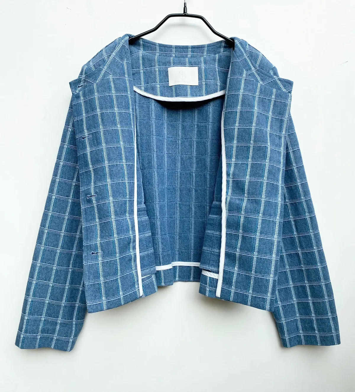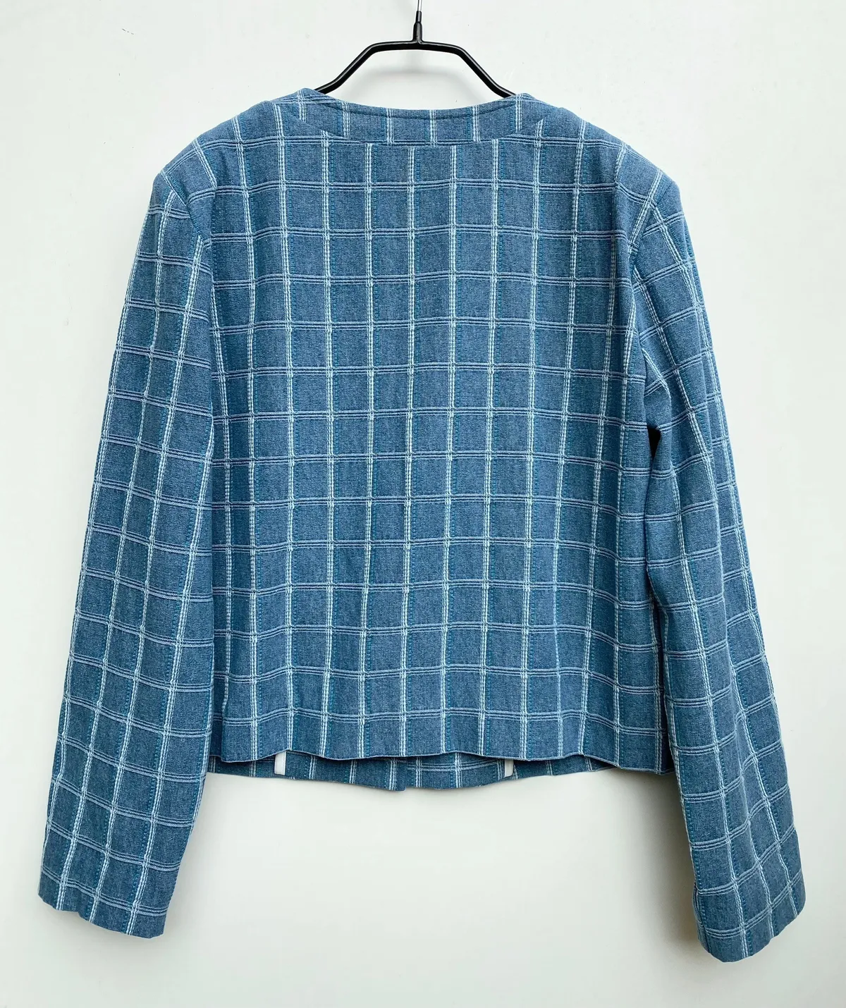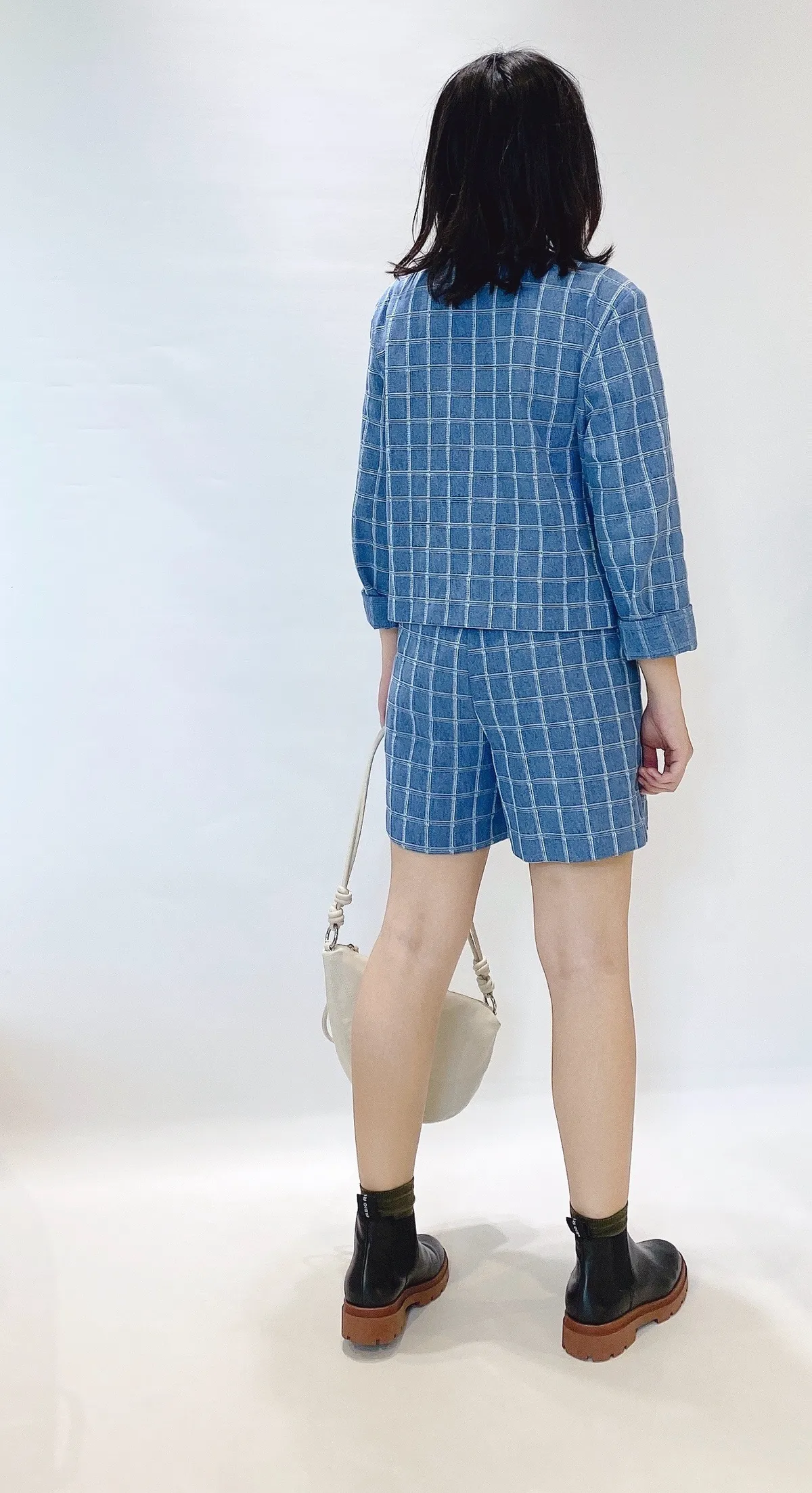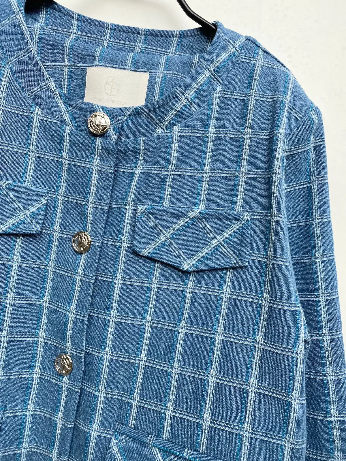圓領格紋布面軟墊肩外套