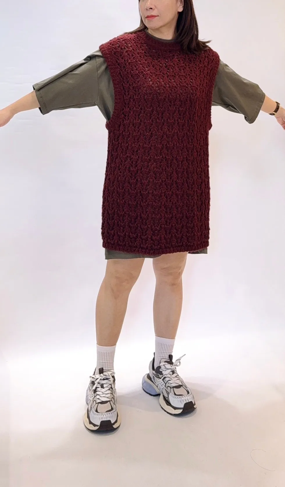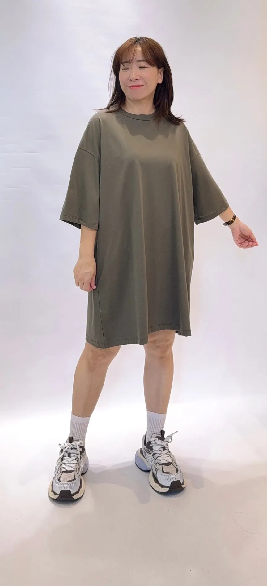 落肩純色長版T