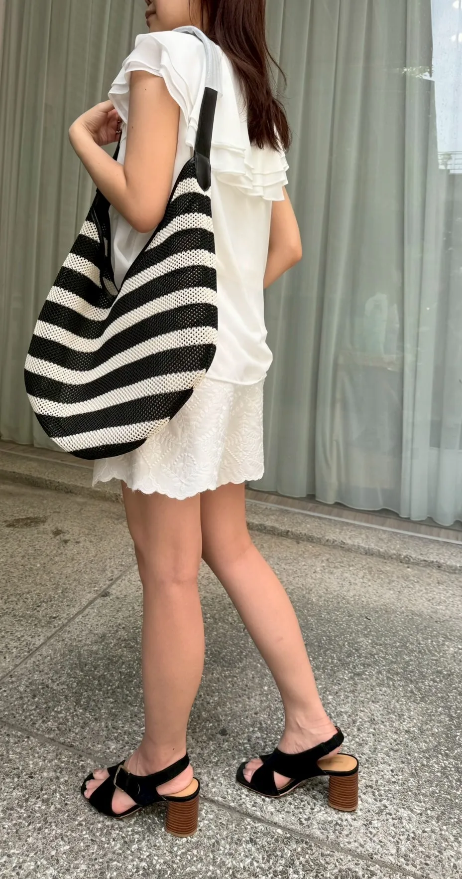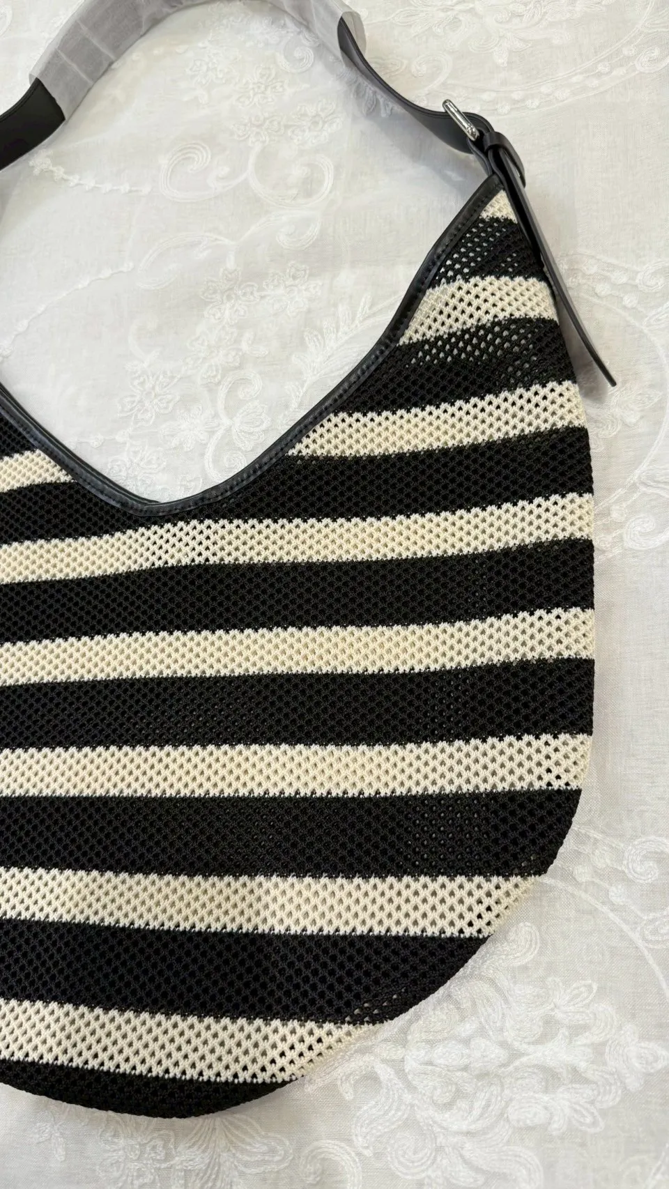 橫條編織肩袋包