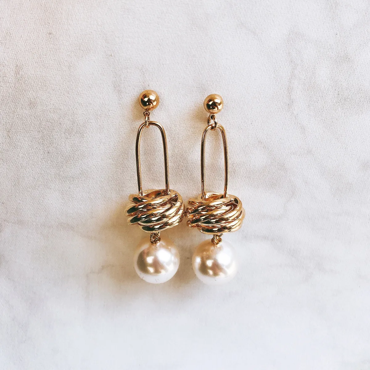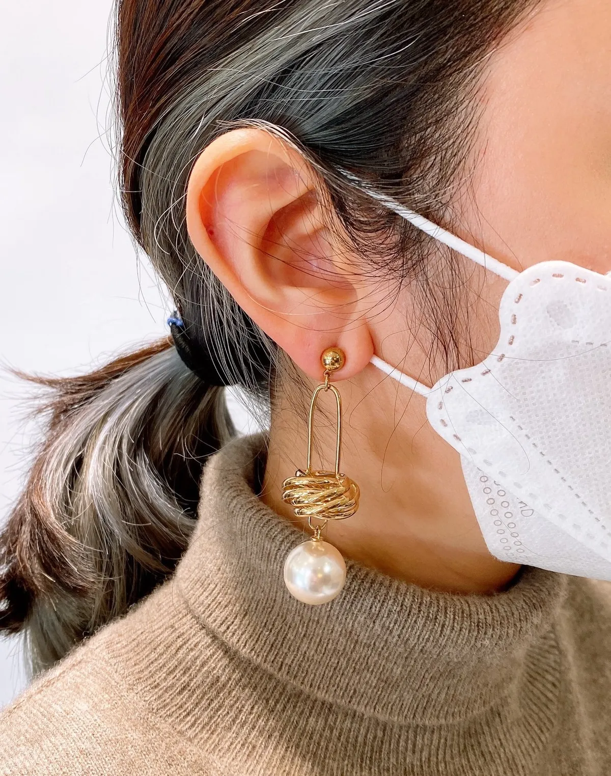 螺旋大珍珠款垂墜耳環