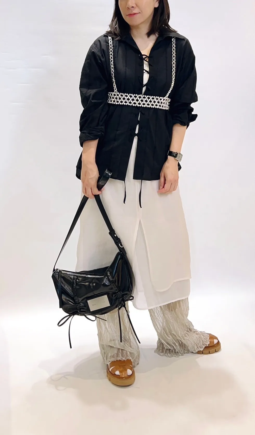 亮面珠珠交叉彈性背心