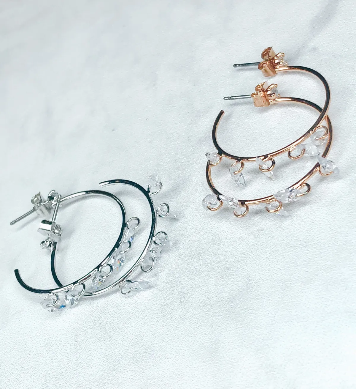 C弧水晶造型耳環