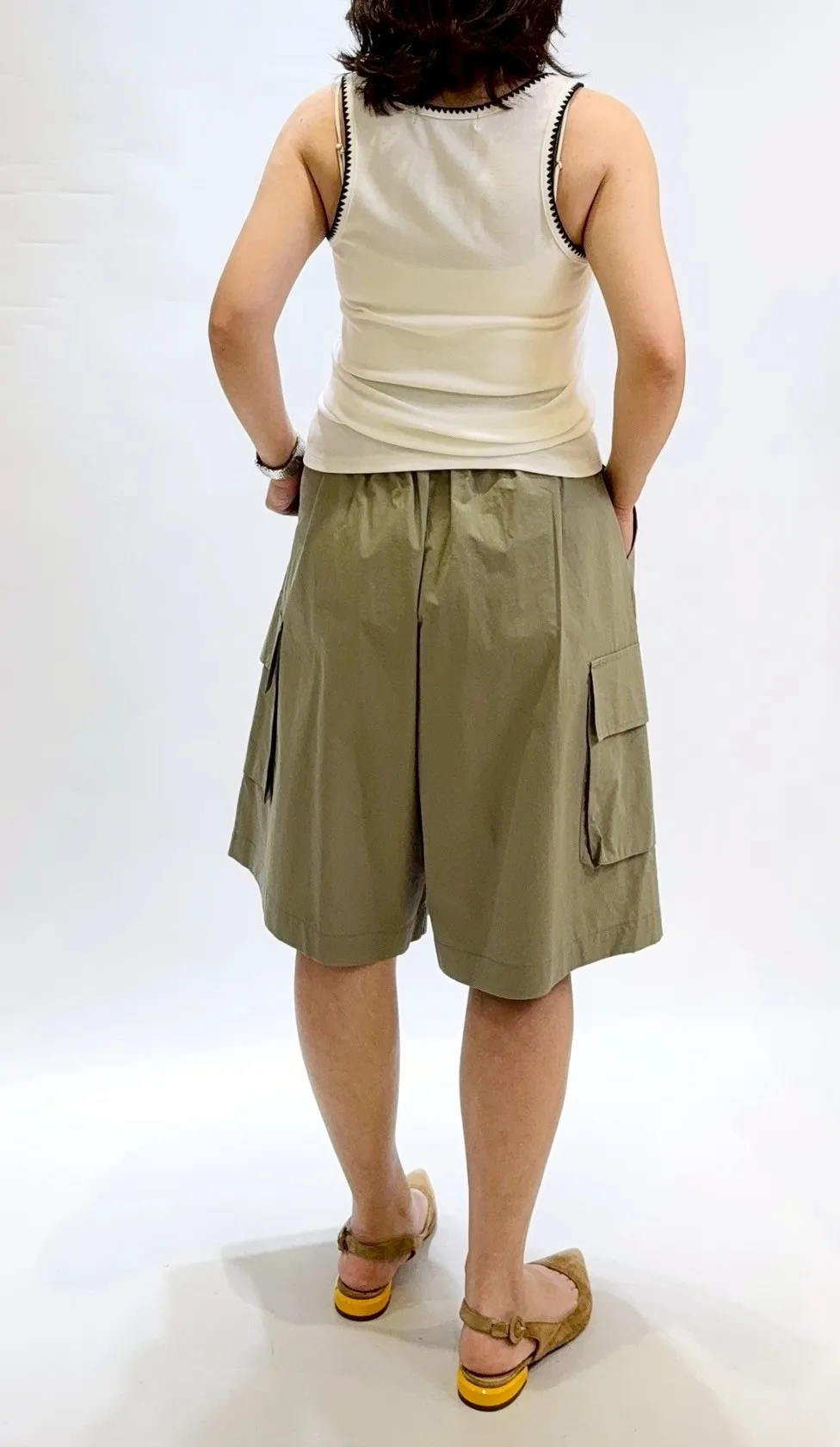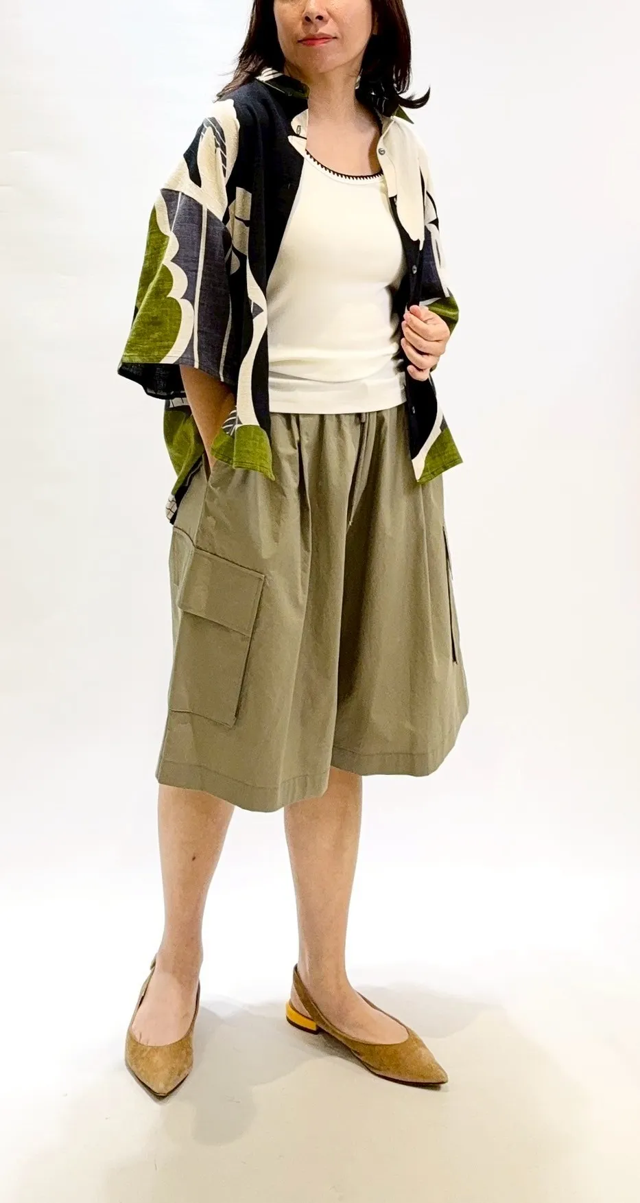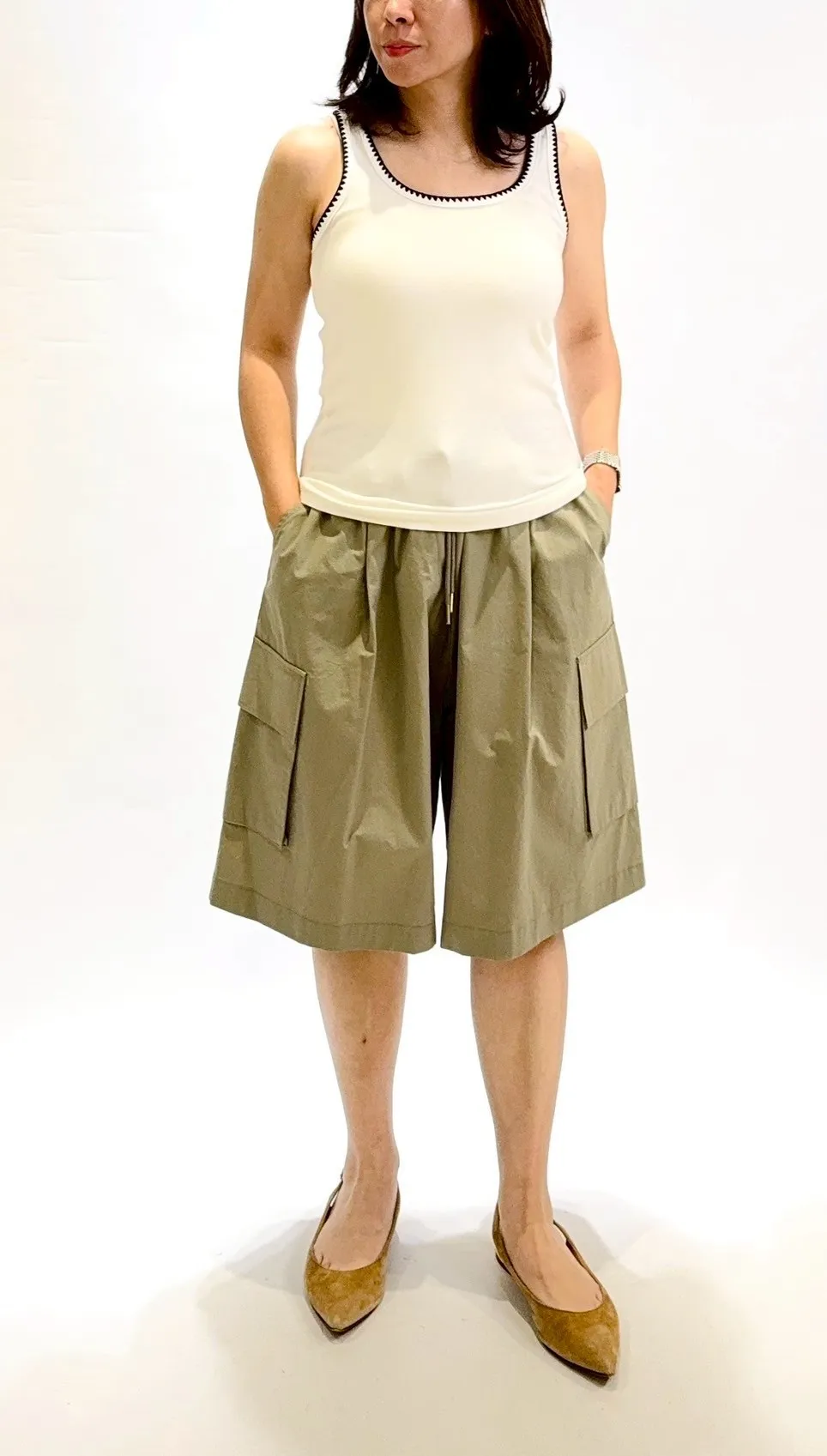 側口袋七分寬褲裙