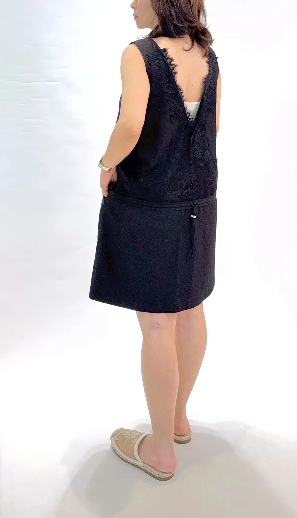 後v睫毛蕾絲縮口洋裝