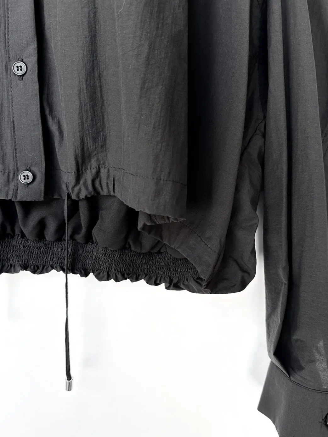 .下擺抽繩設計可自行調整鬆緊,呈現自然鬆份感