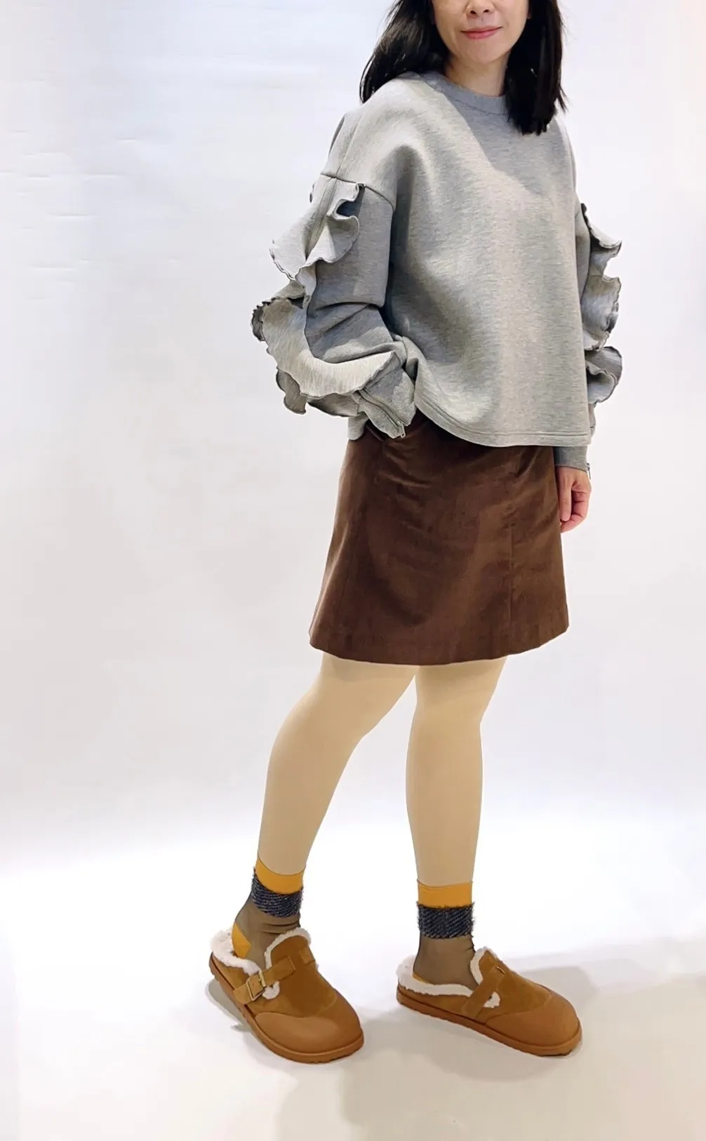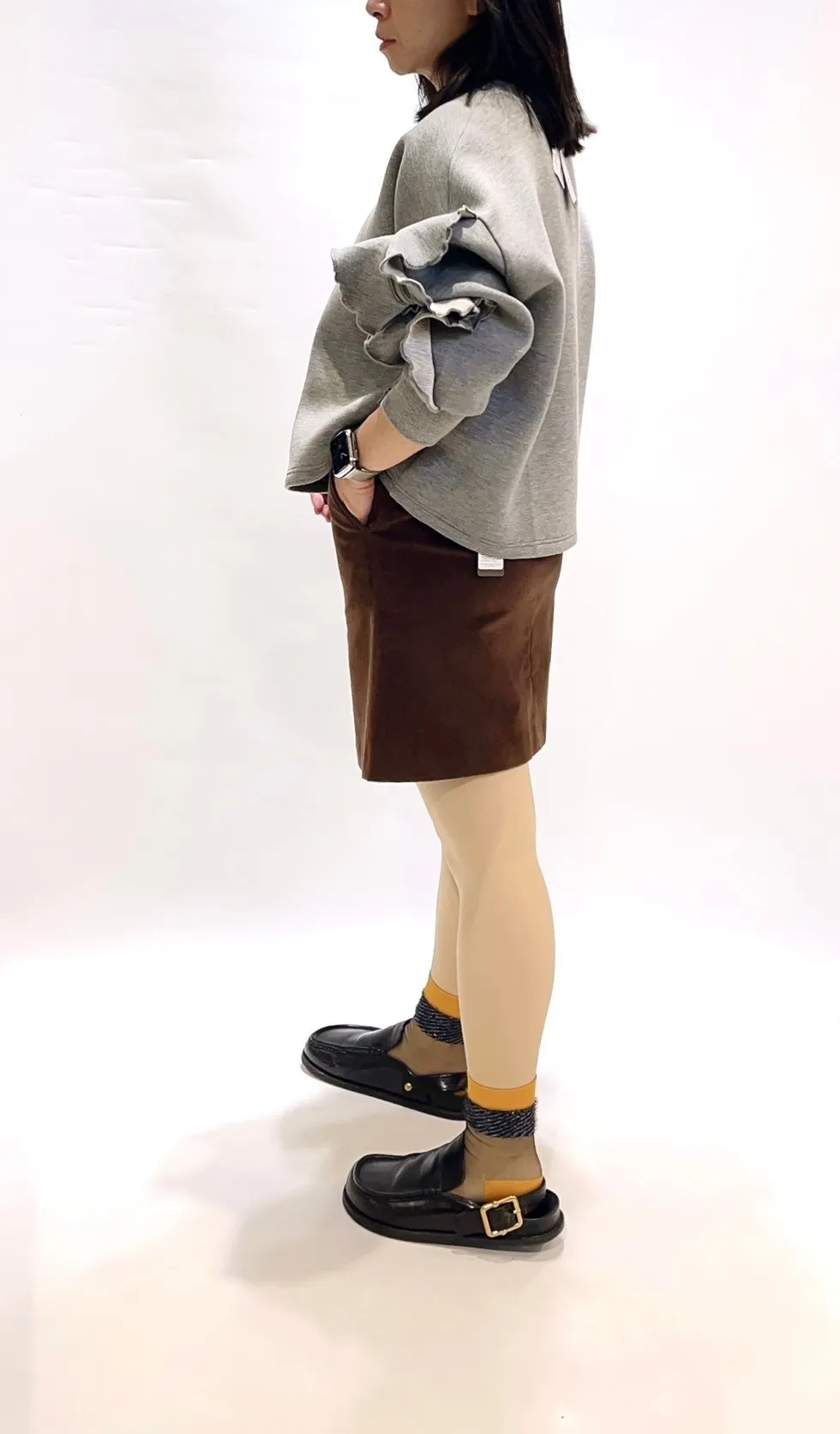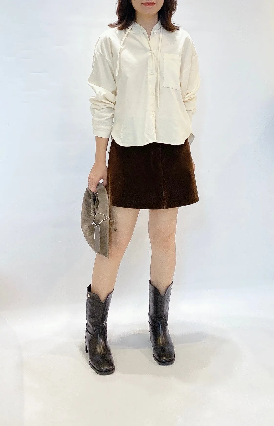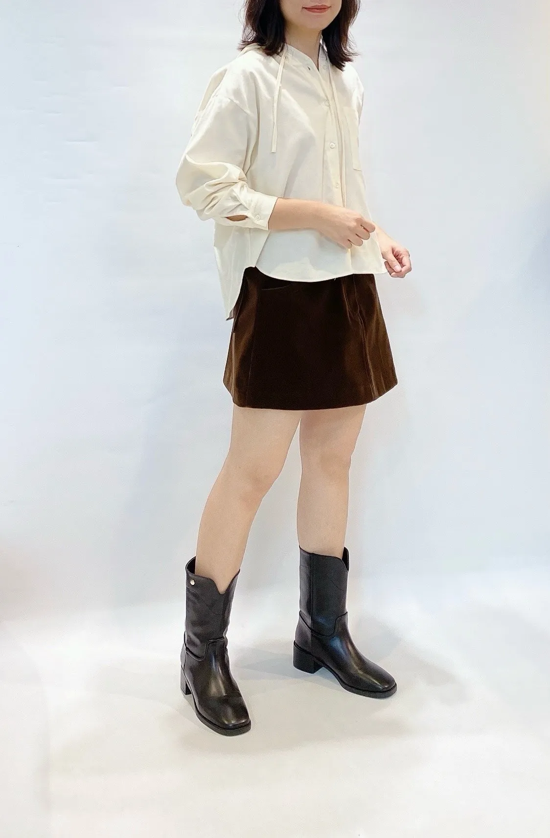 細絨面復古釦短裙