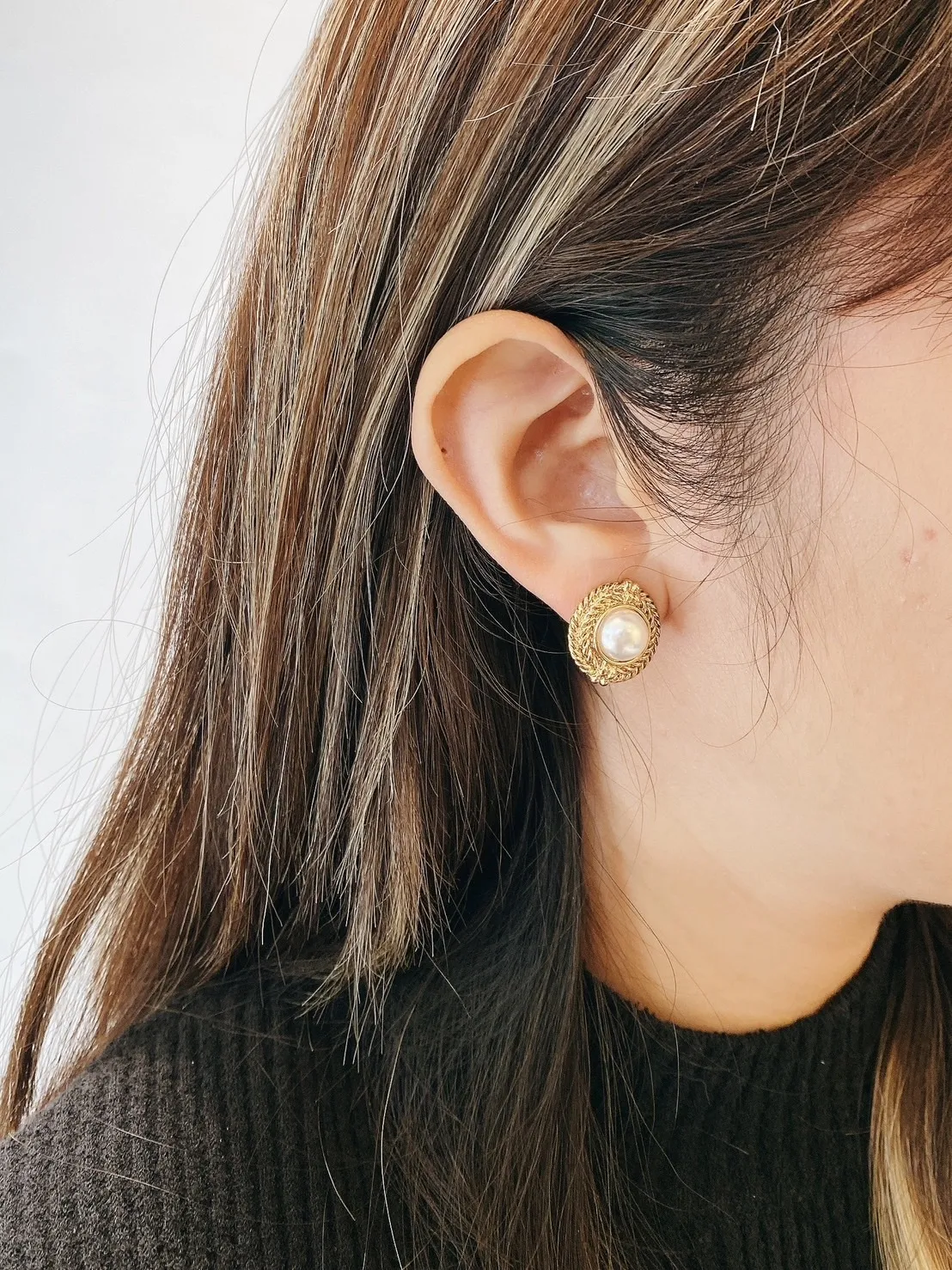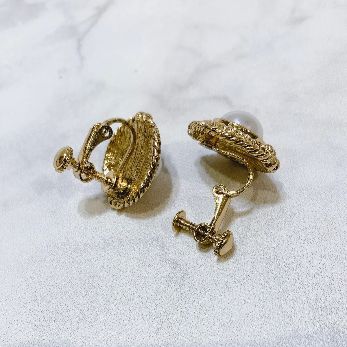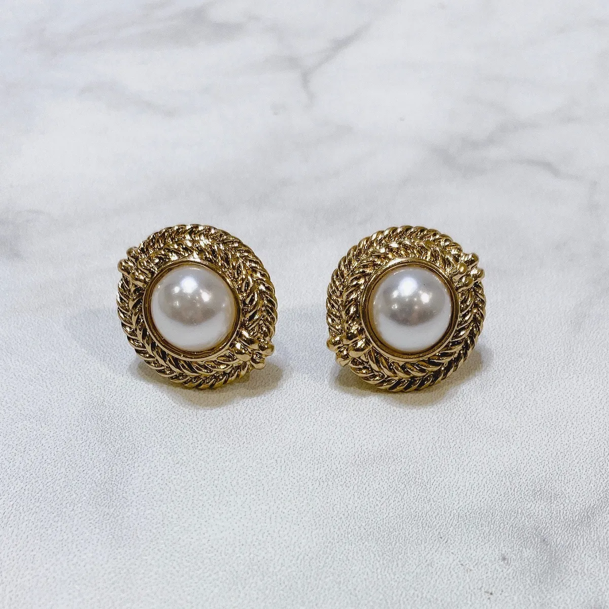 [耳夾式]復古編織紋珍珠耳夾