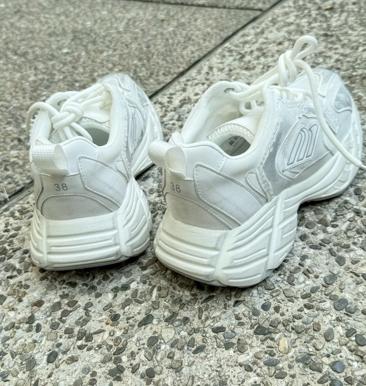 僅現貨尺寸/蕾絲網點微透塗刷厚底球鞋