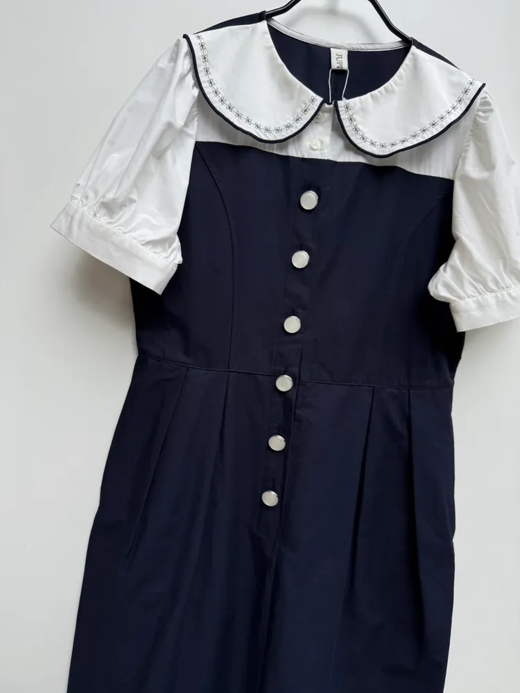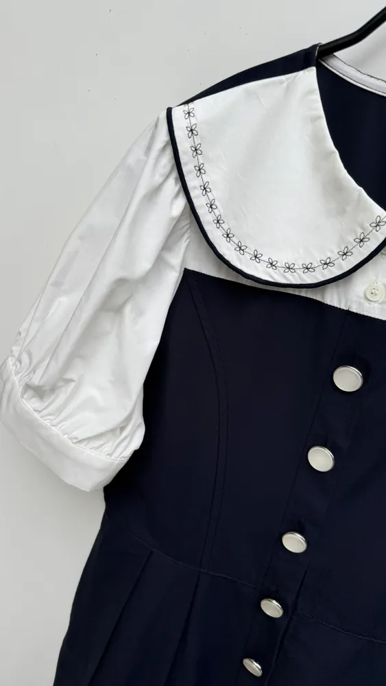 .小花刺繡滾邊造型領片,帶有挺度,獨特造型設計