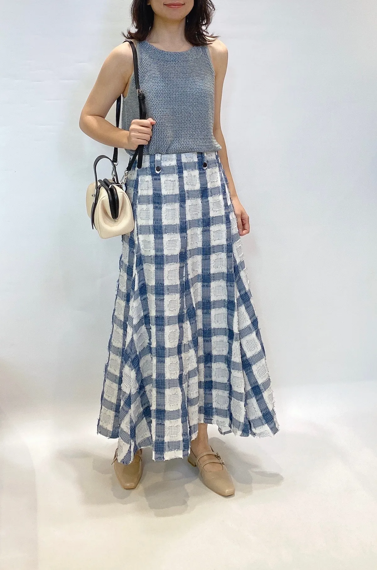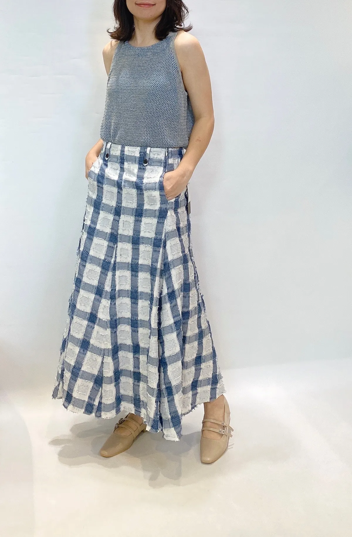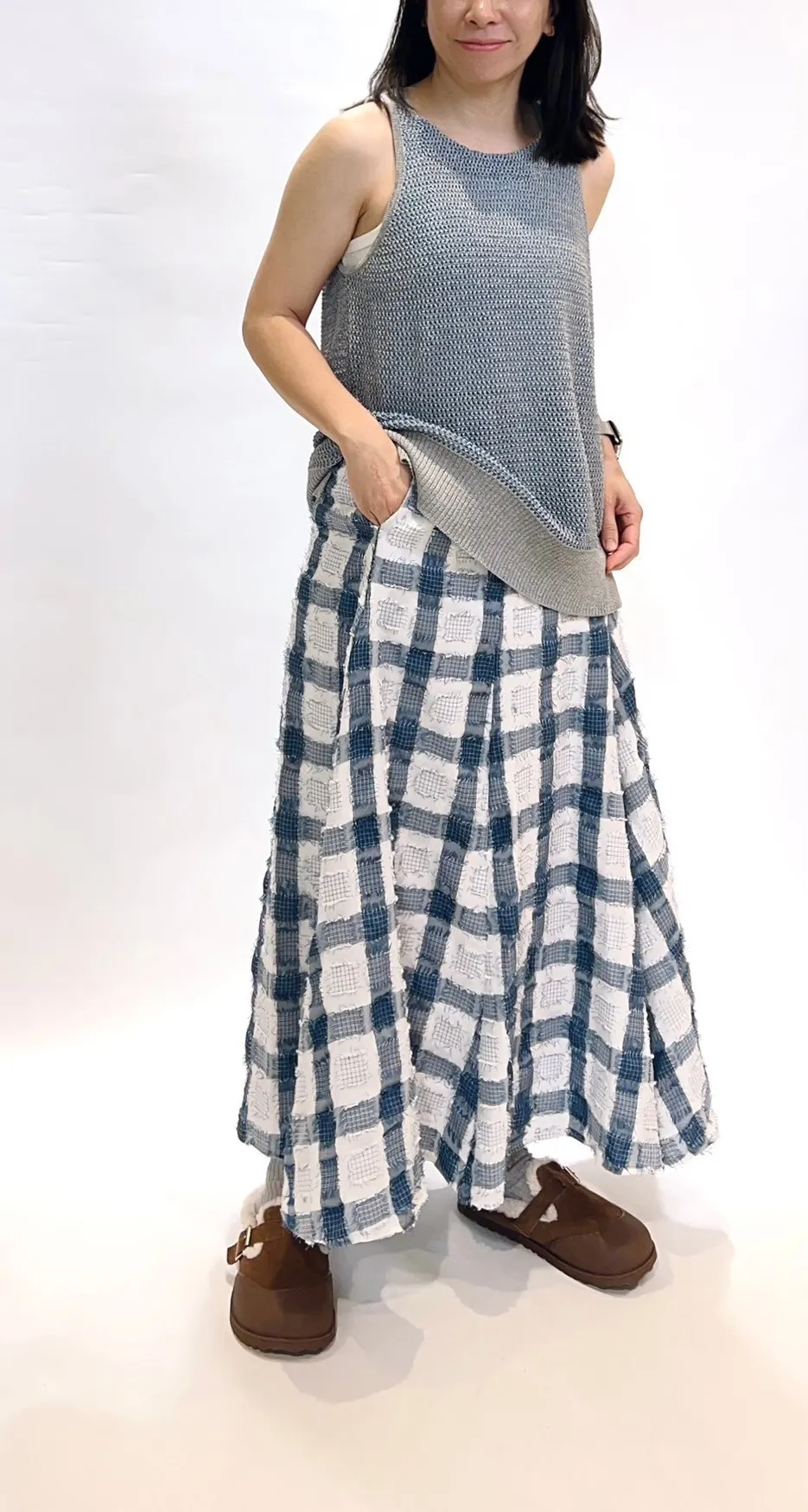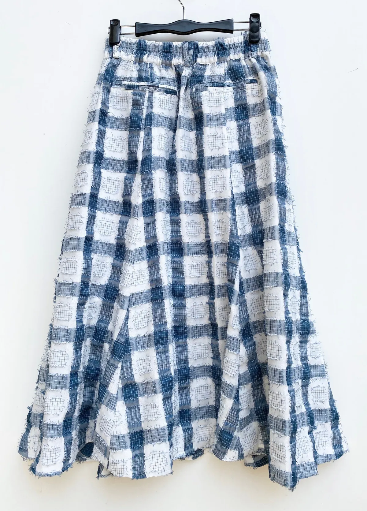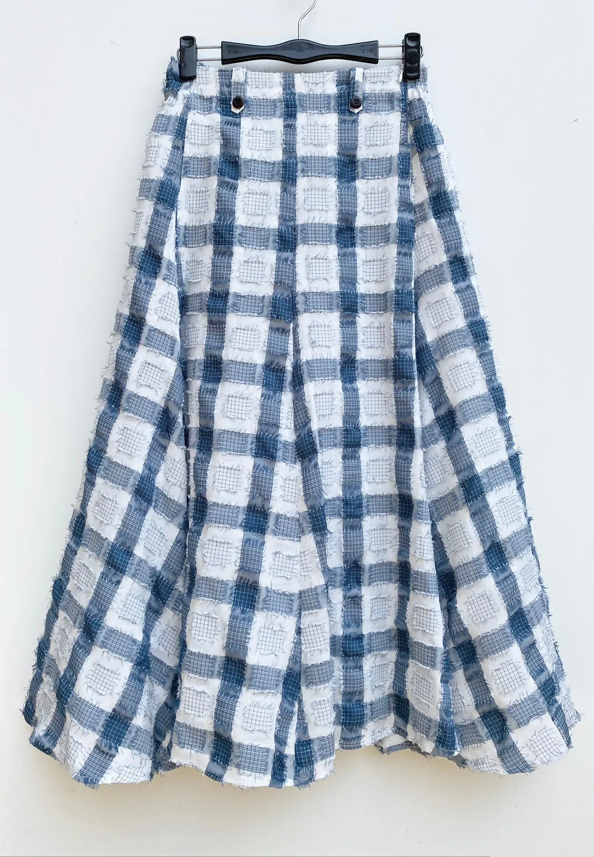 立體紋路流蘇方格拼色長裙