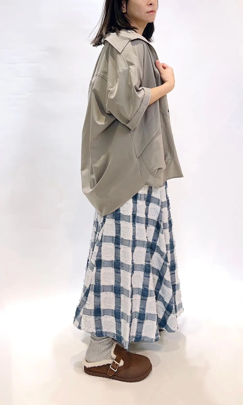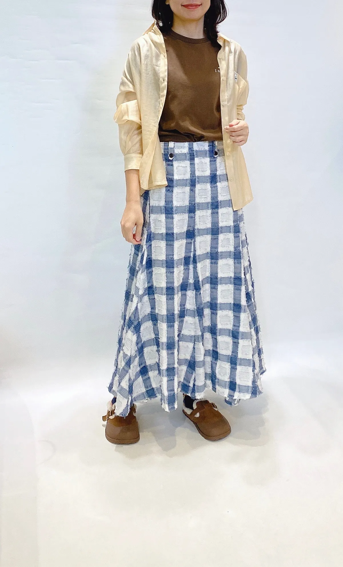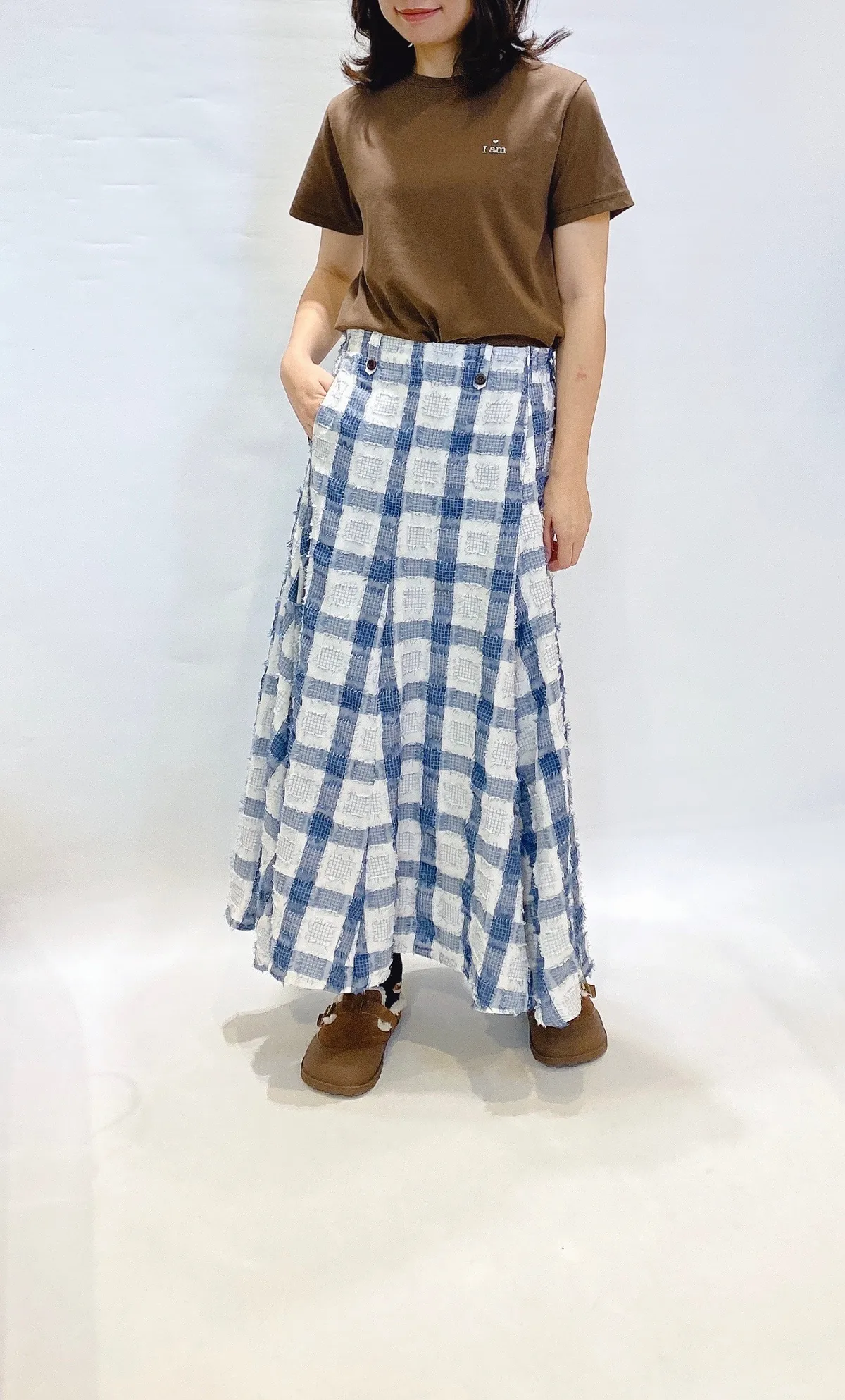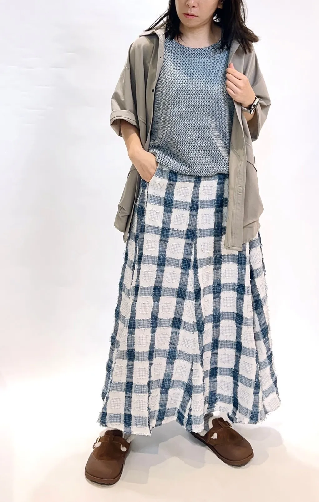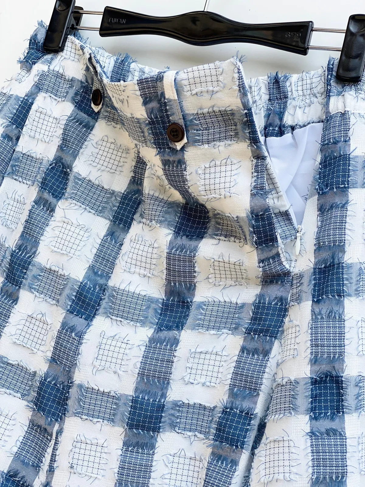 立體紋路流蘇方格拼色長裙