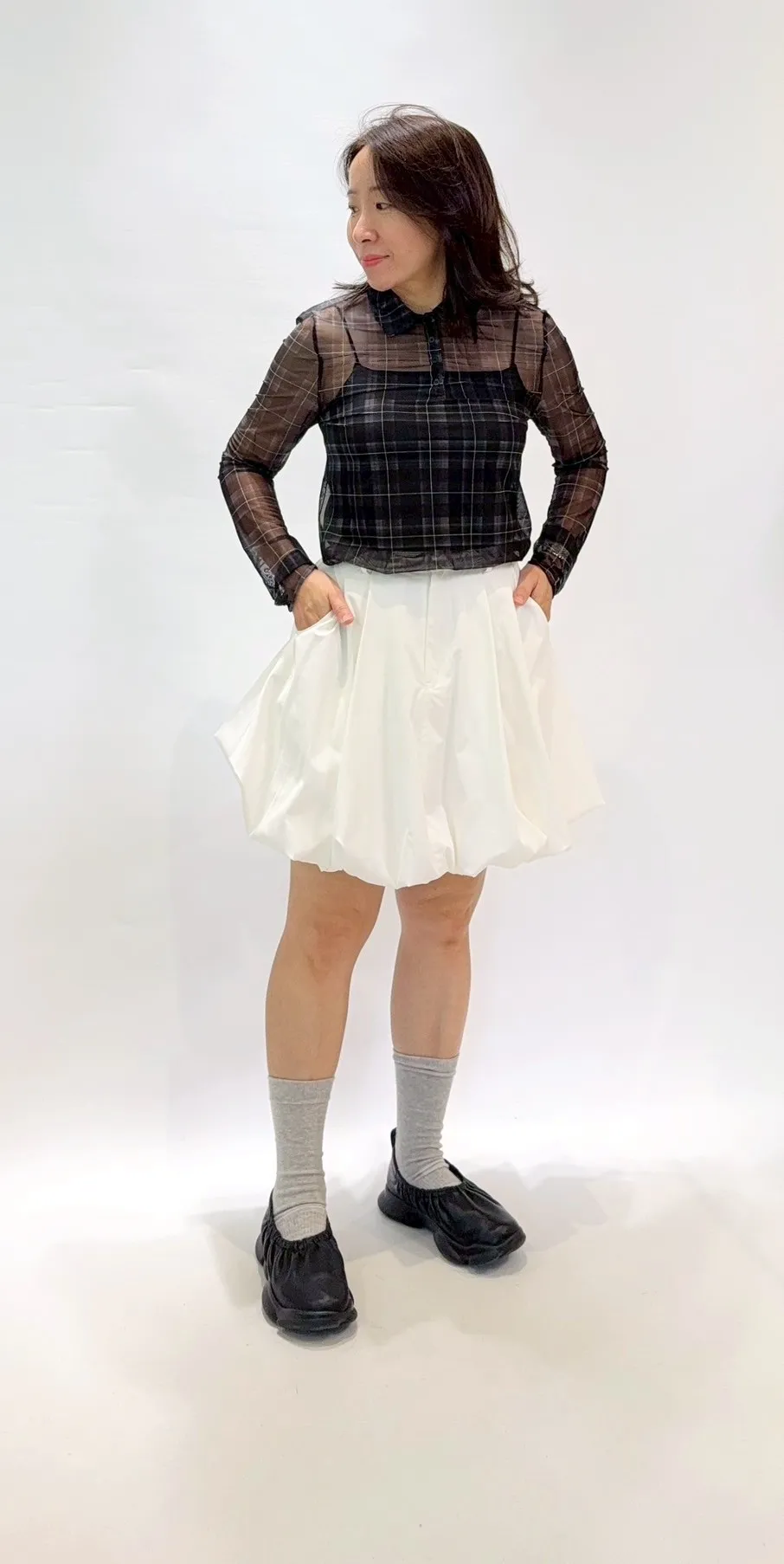 襯衫領薄紗上衣
