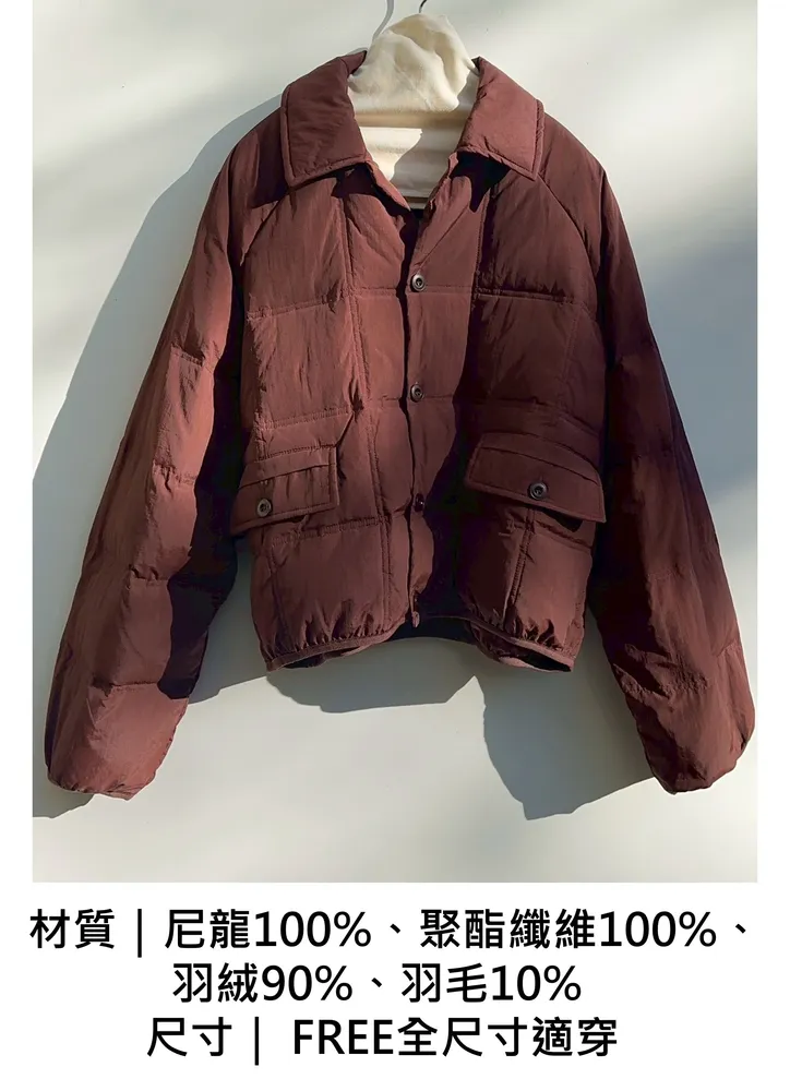 | F | 詳細尺寸請私訊官方Line/粉絲專頁 | 尼龍100%、聚酯纖維100%、羽絨90%、羽毛10% | 155CM/53KG |