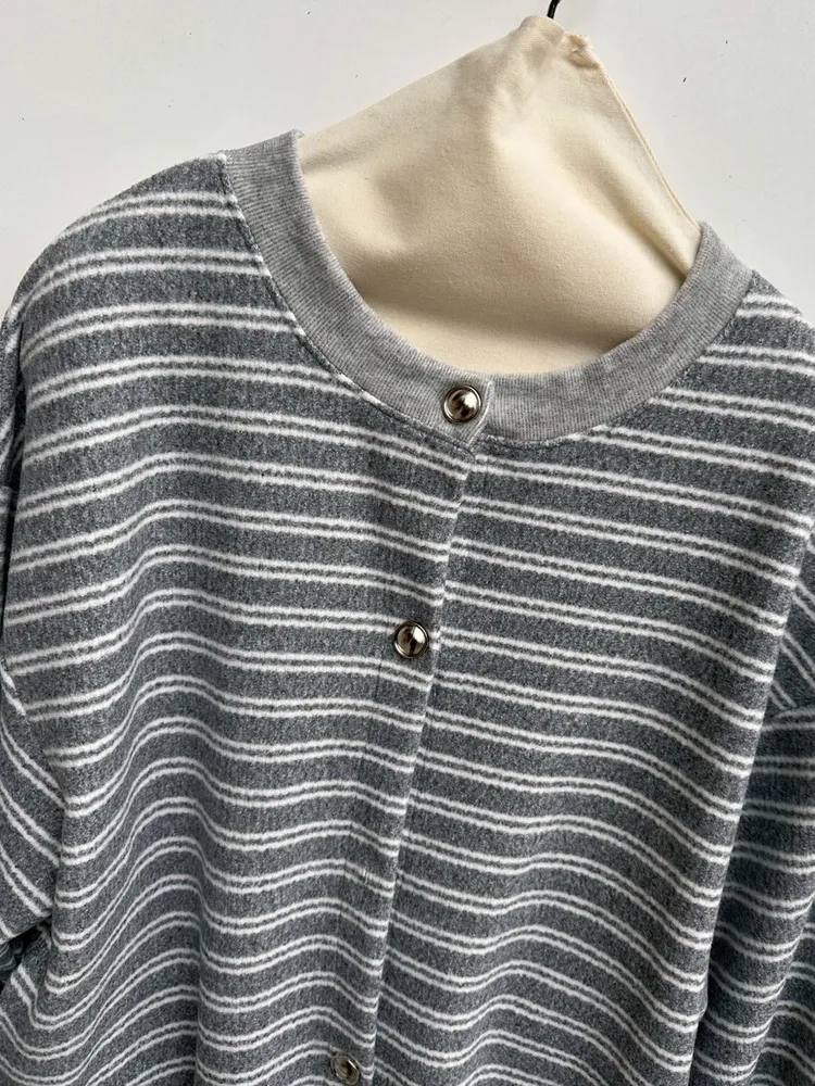 橫條相間金釦外套
