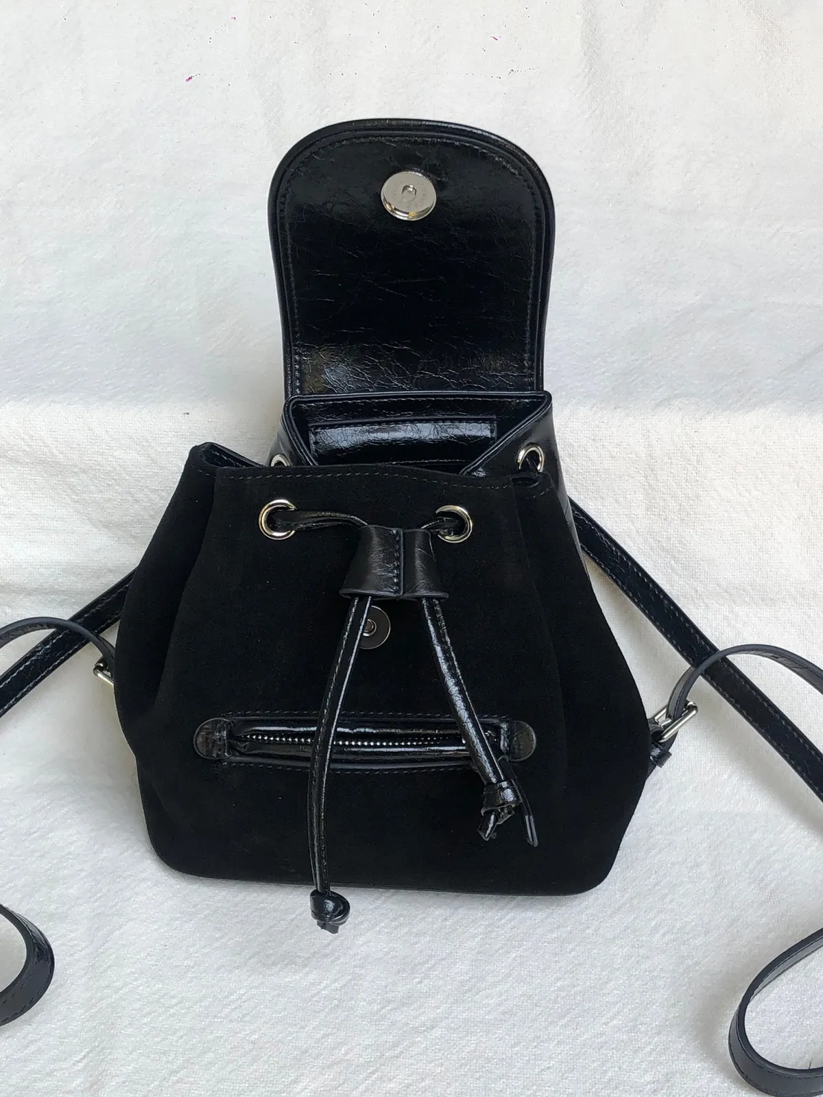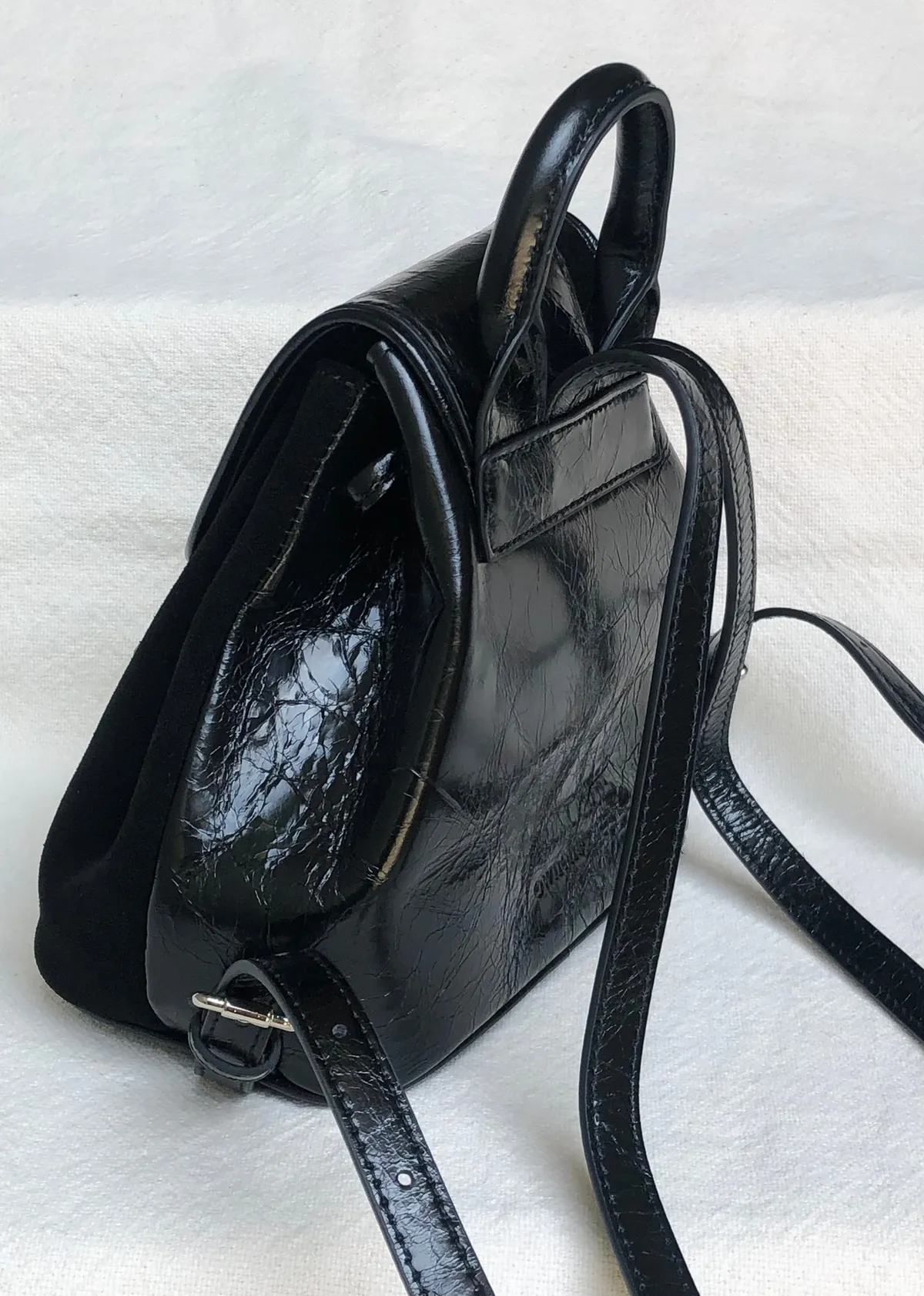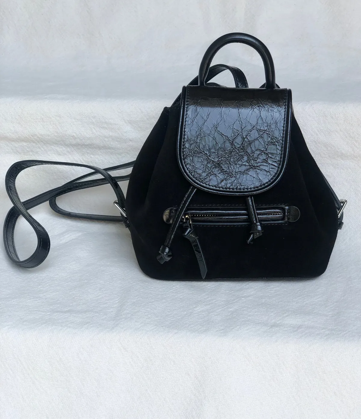 牛皮麂皮拼接後揹小包