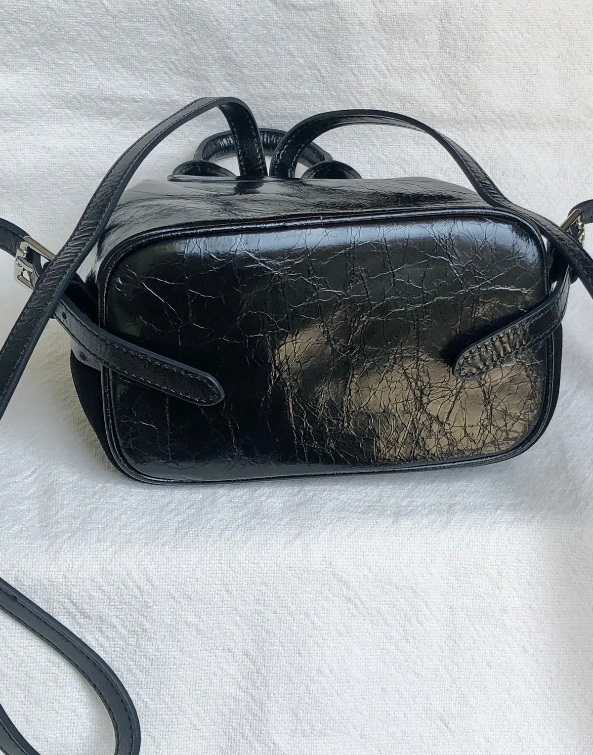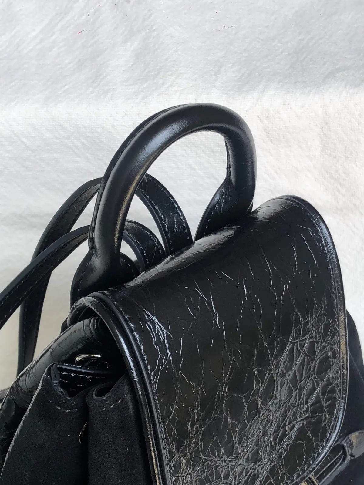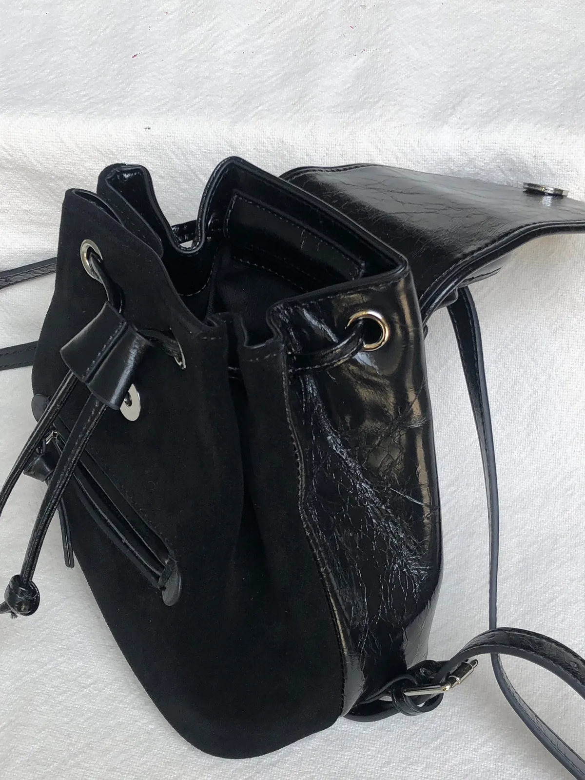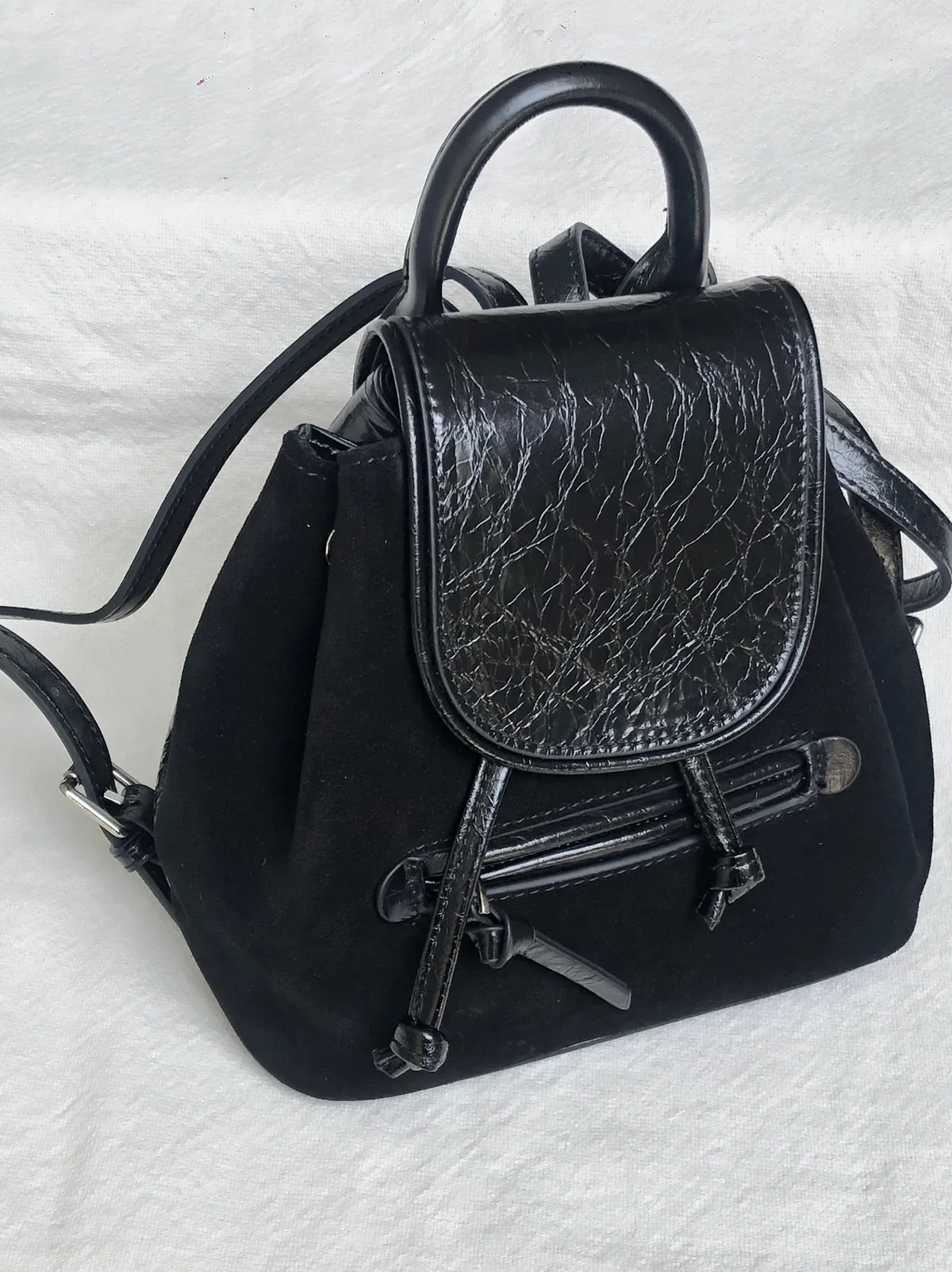 牛皮麂皮拼接後揹小包
