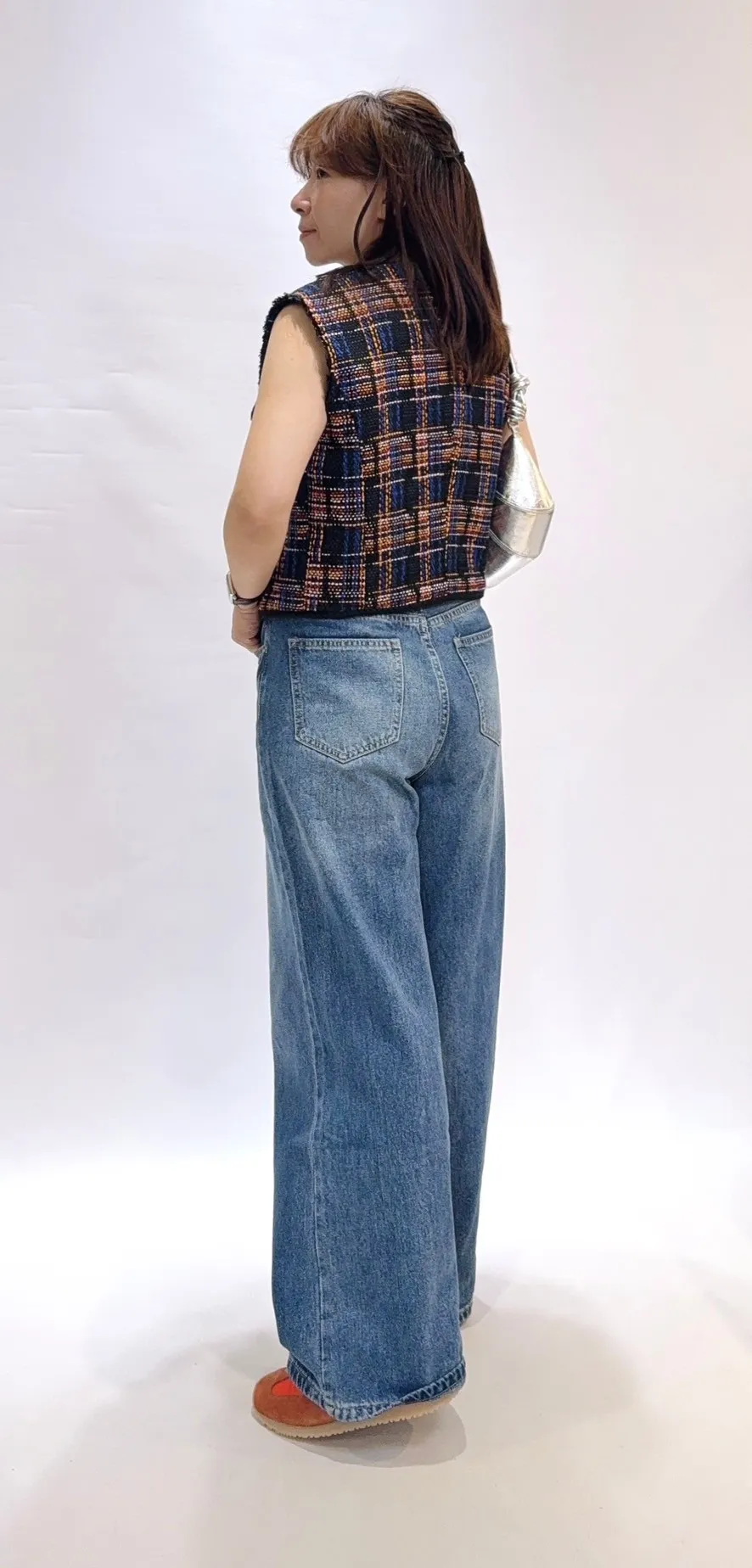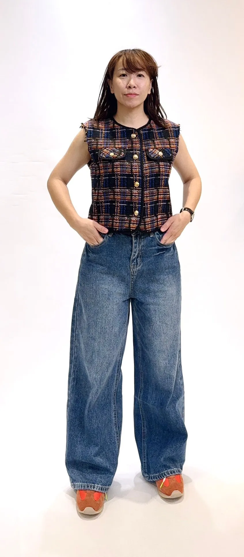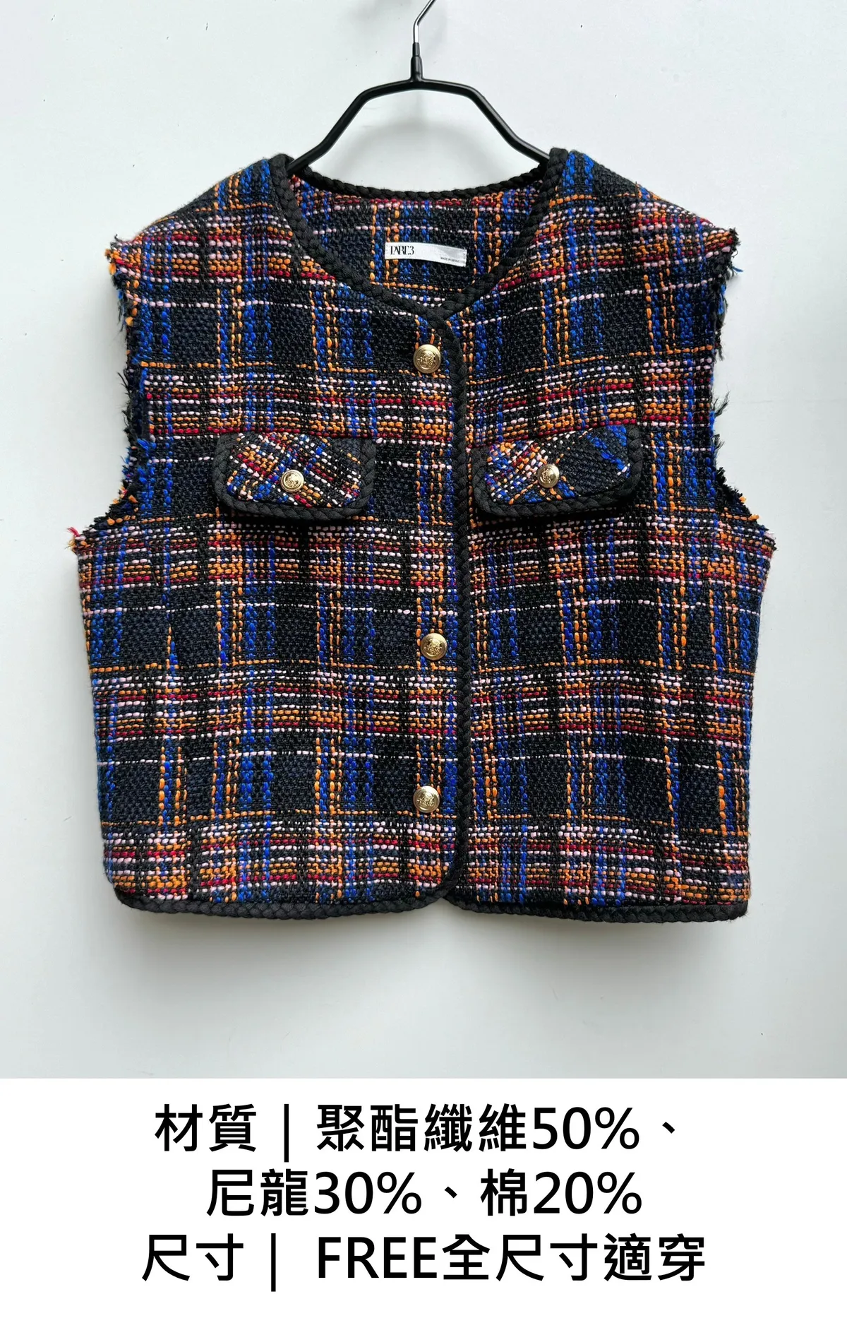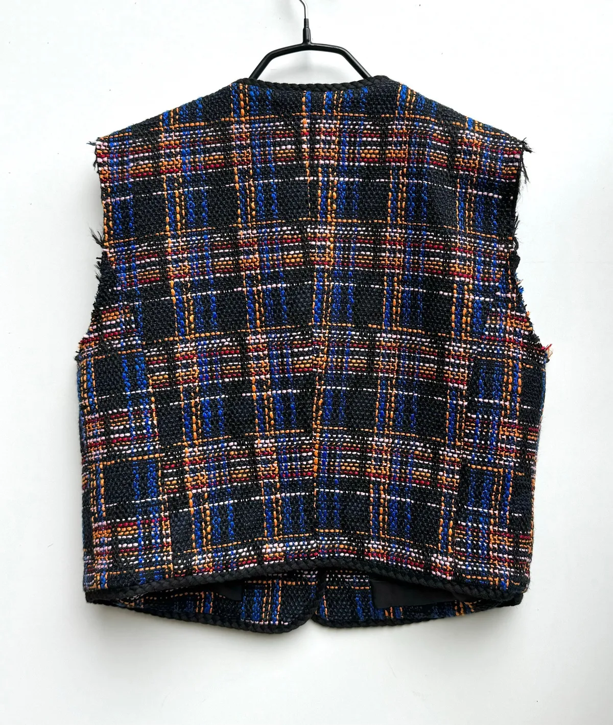 毛呢格紋編織不收邊背心