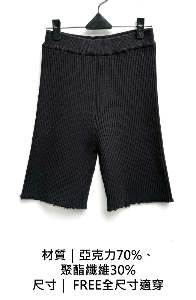 破損彈性羅紋五分褲