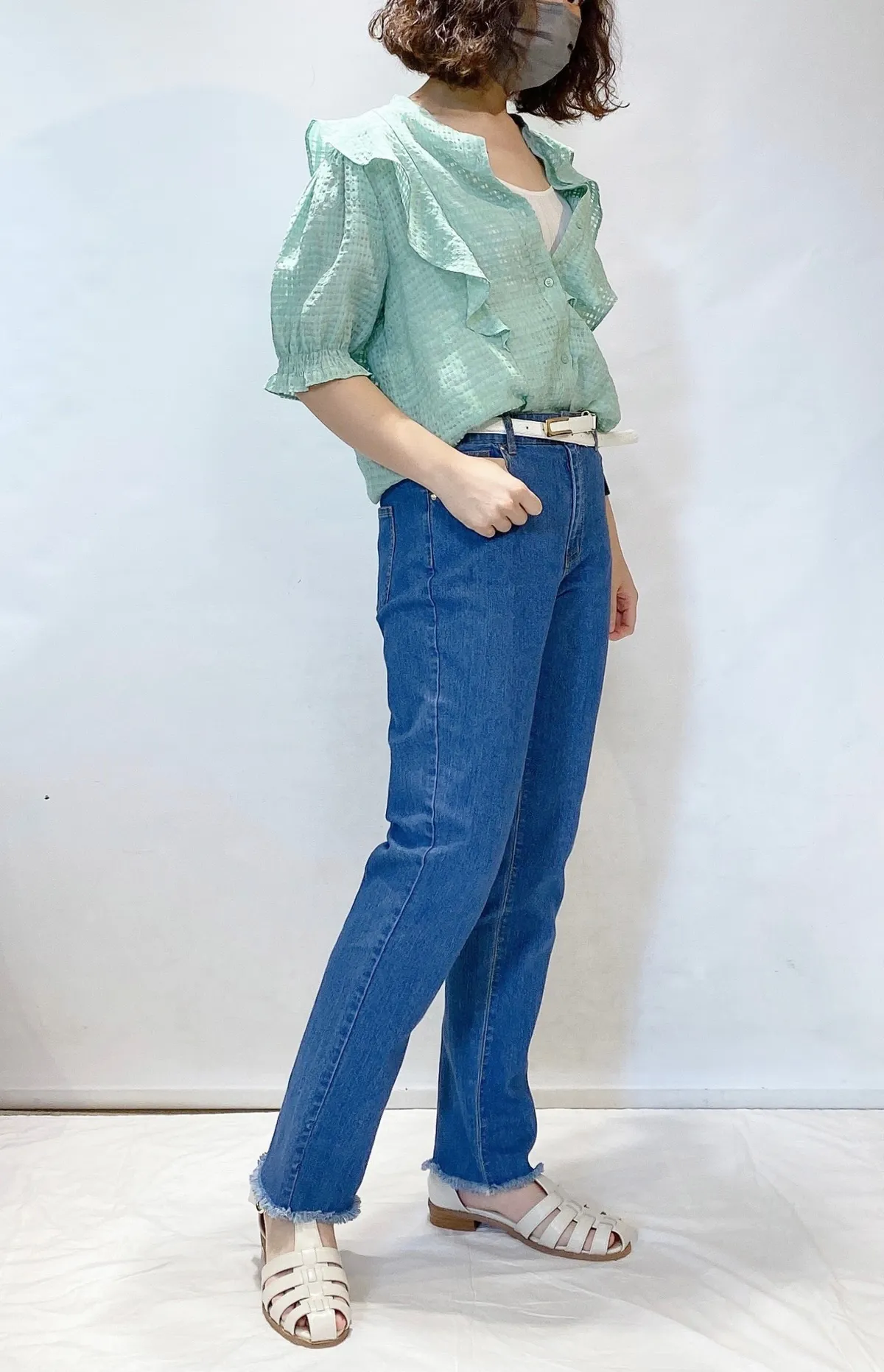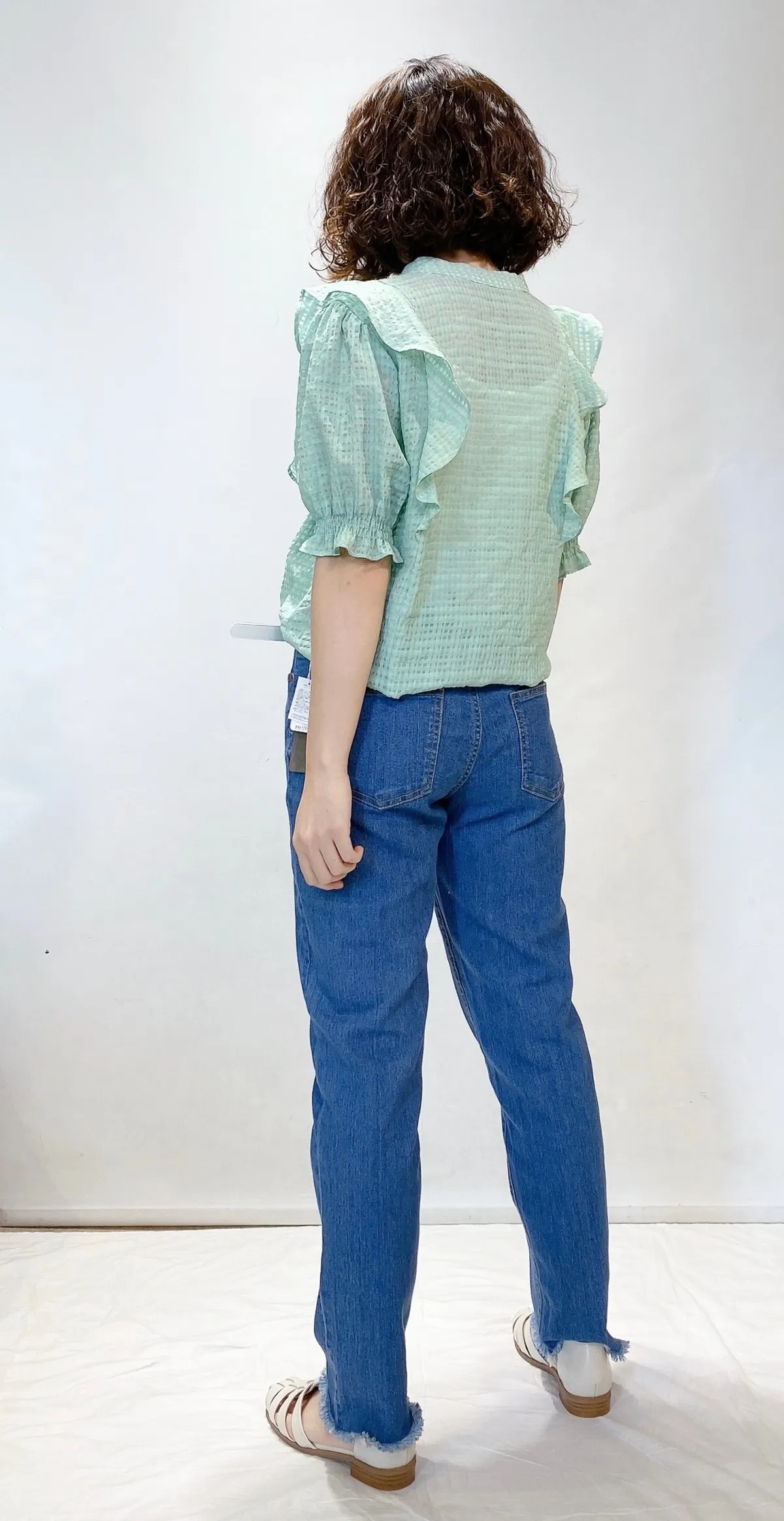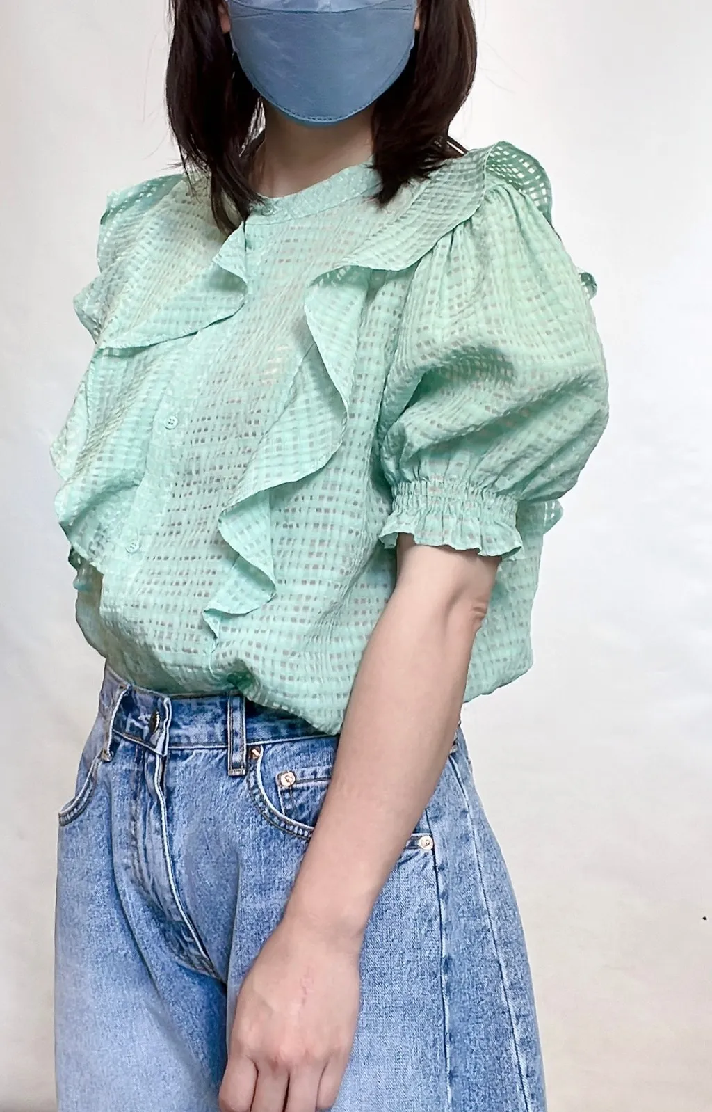細格紋荷葉上衣