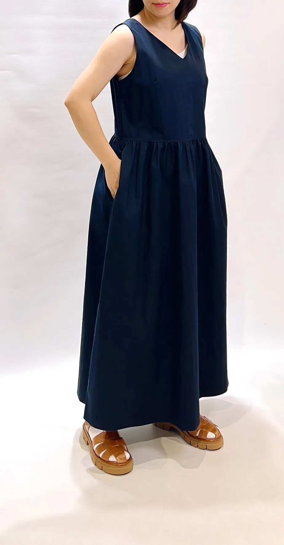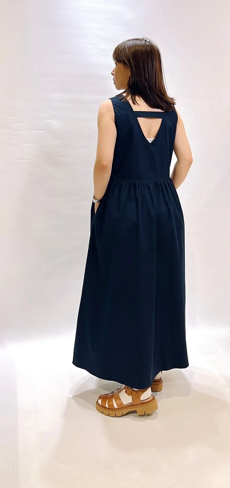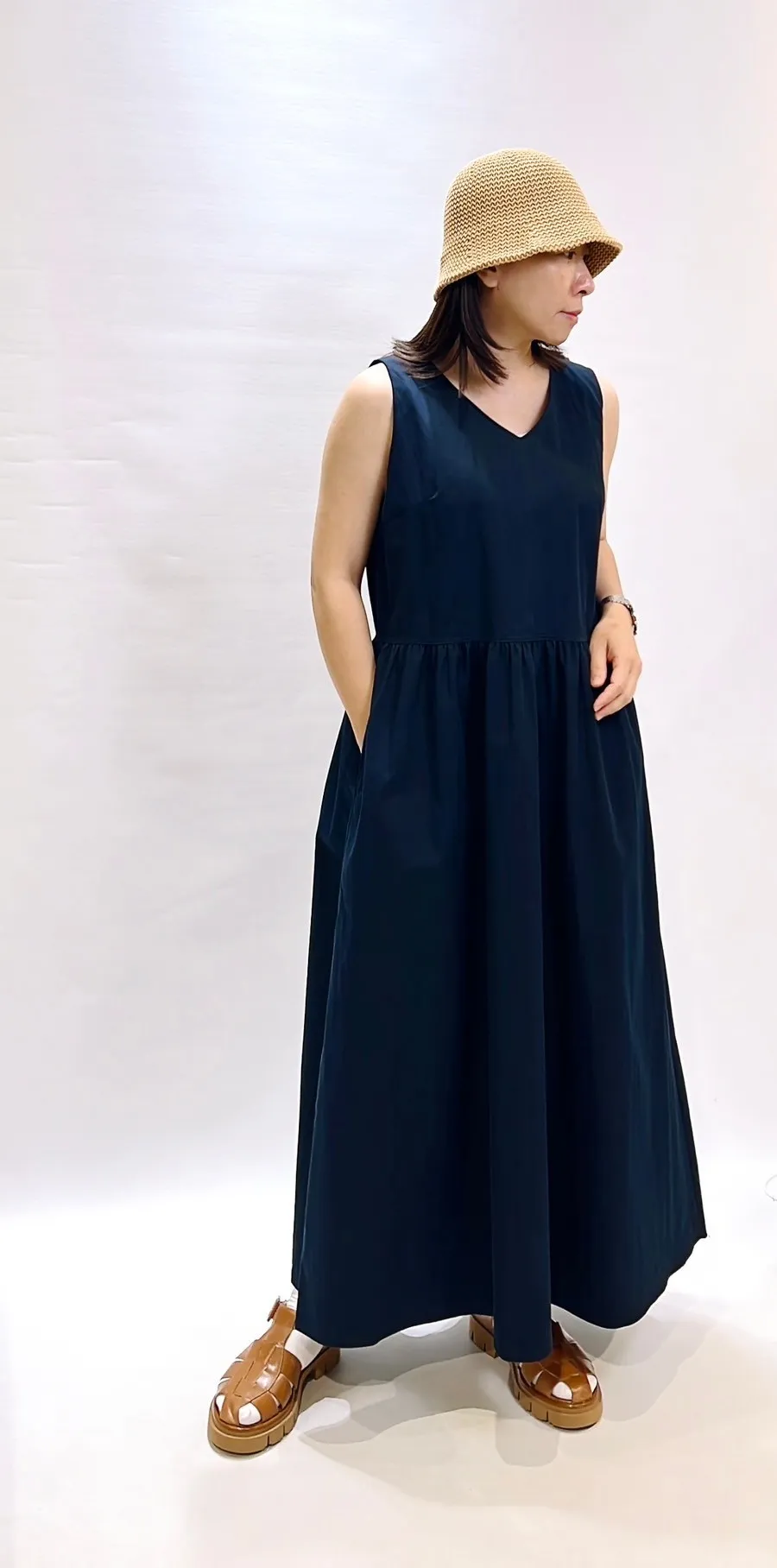 素面橫帶背心洋裝