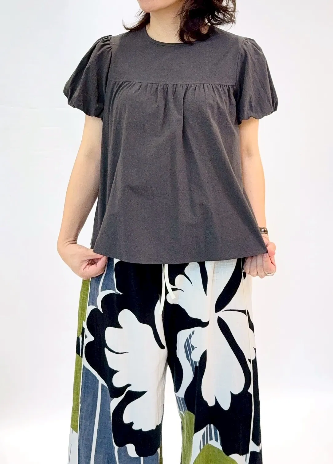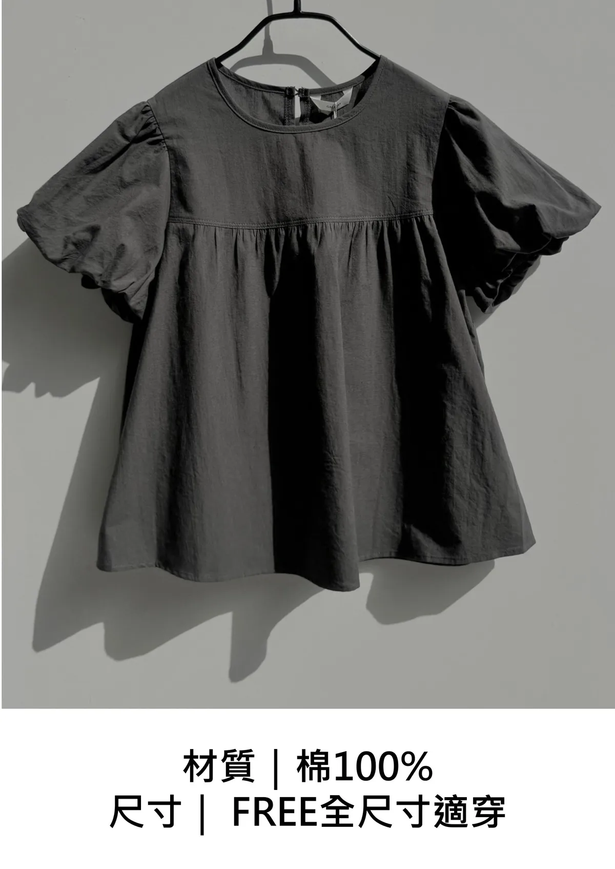 棉質澎袖傘擺上衣(素面)