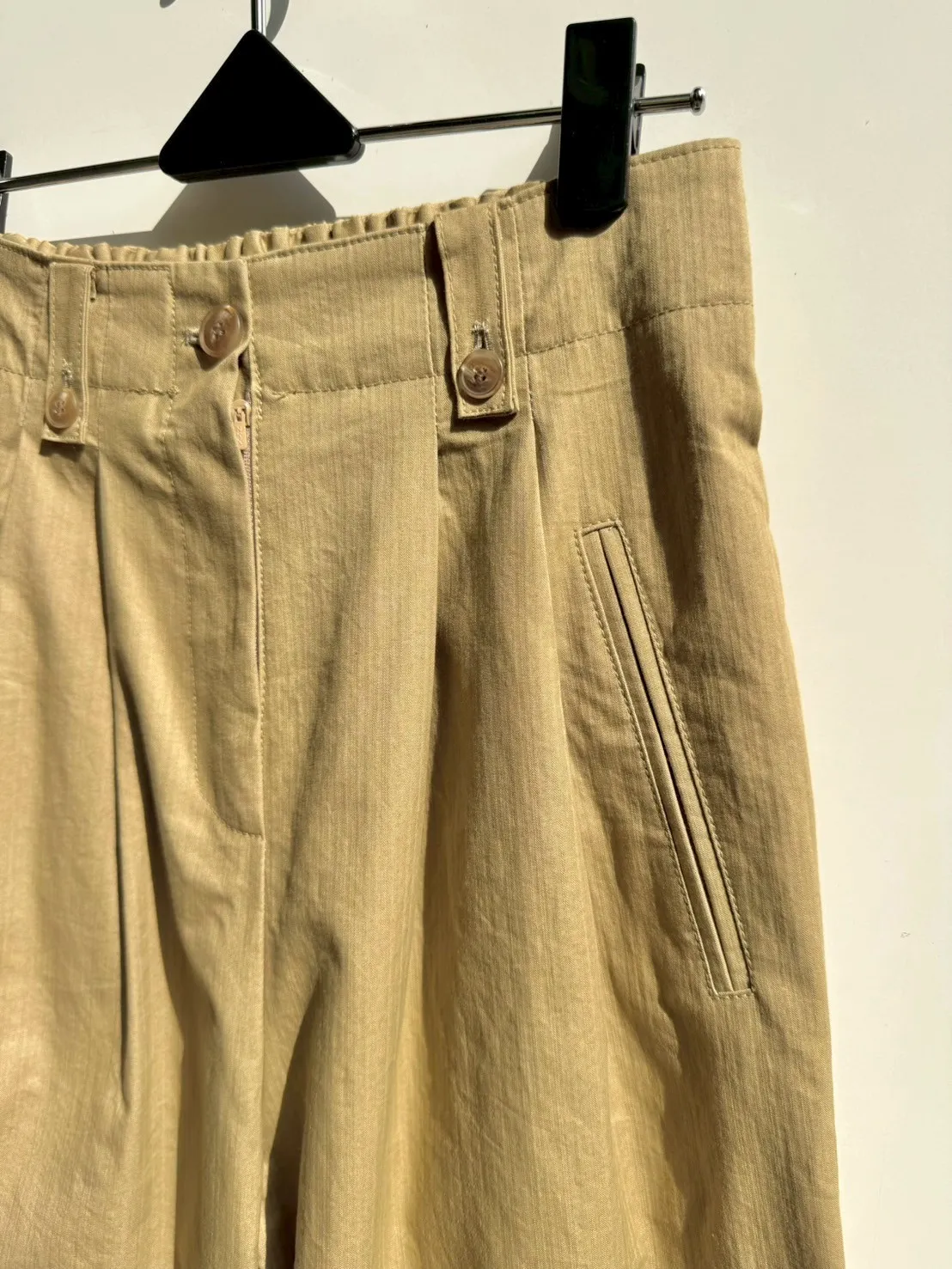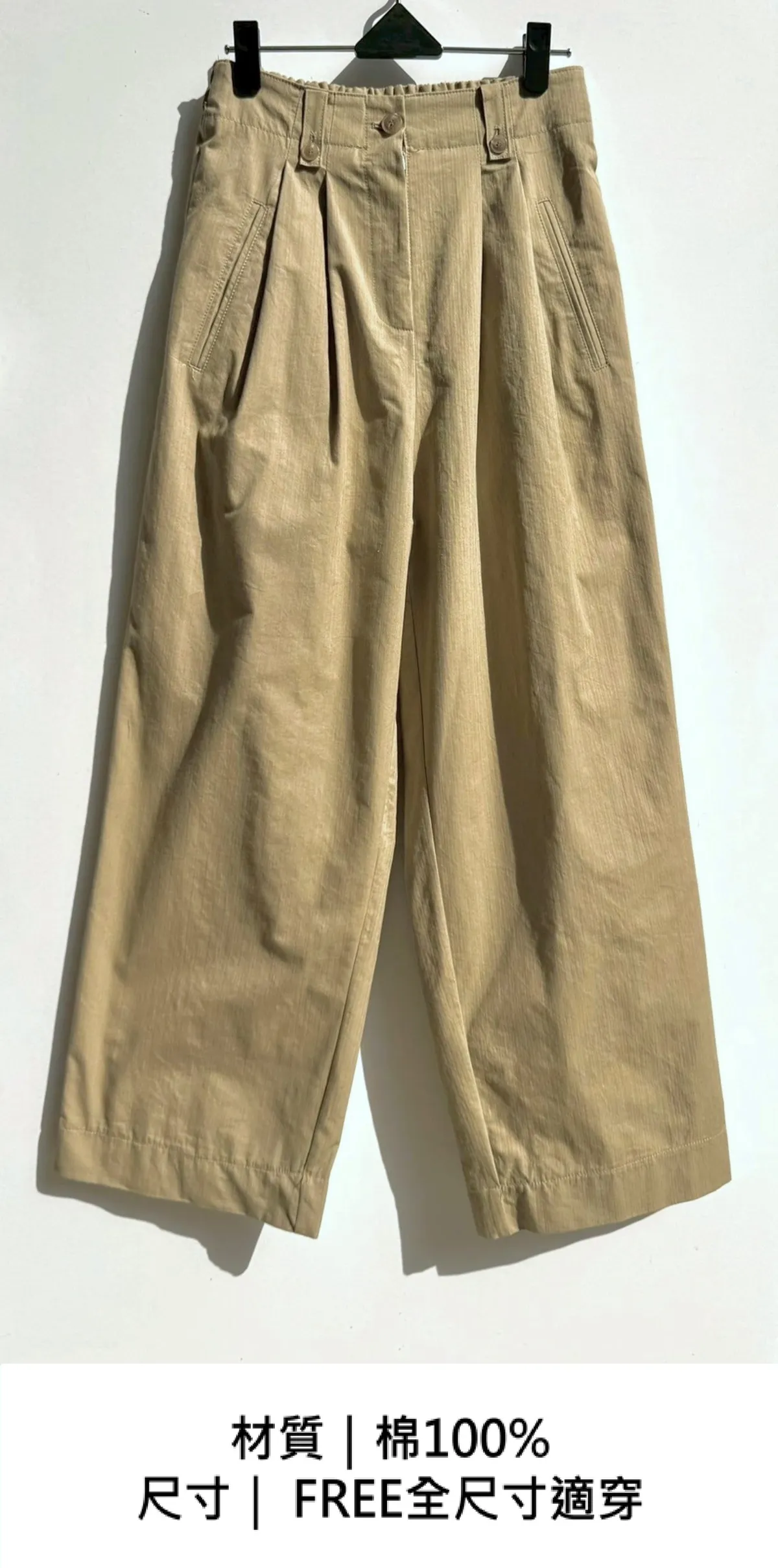 高腰摺線壓紋寬褲