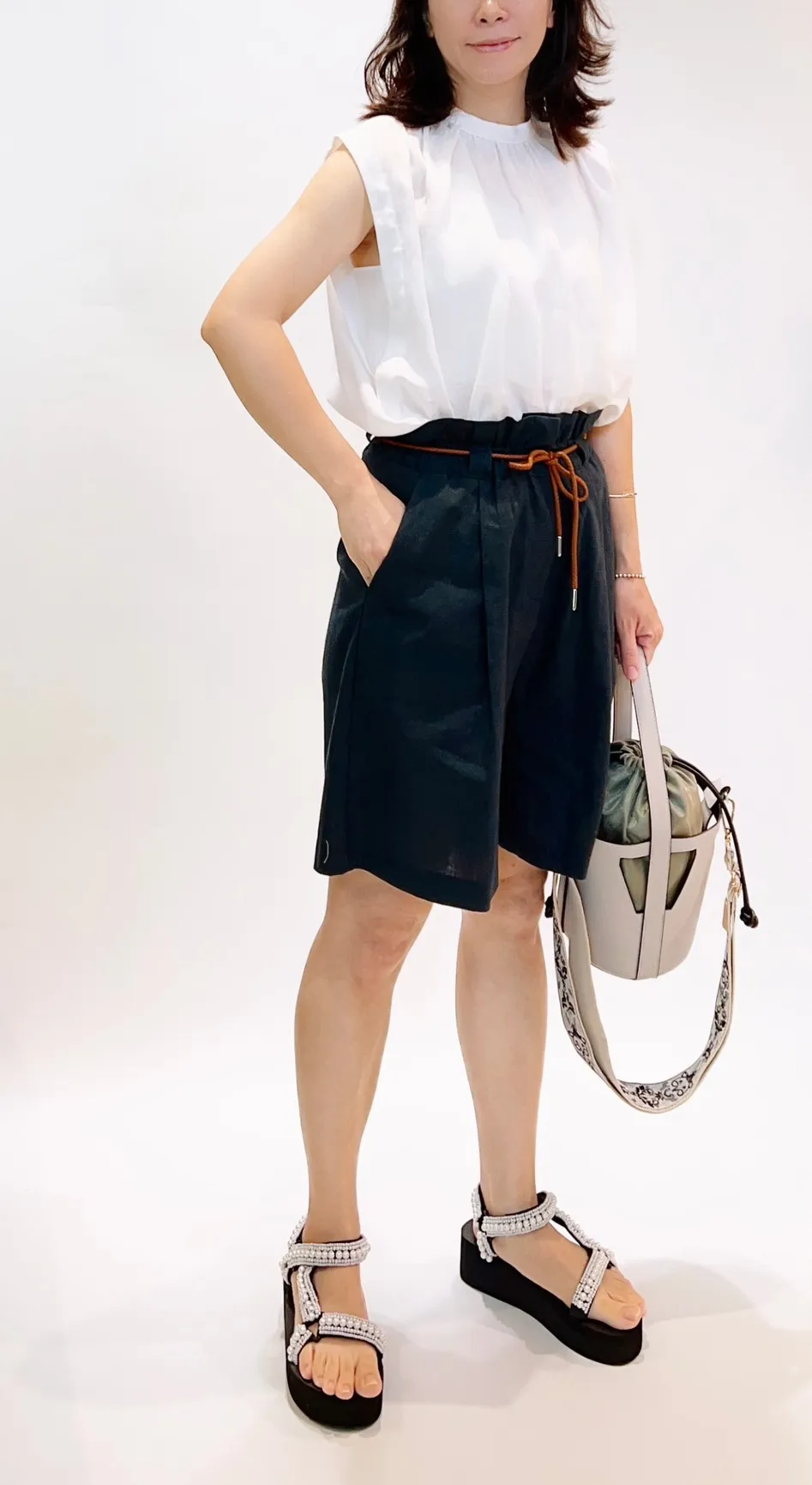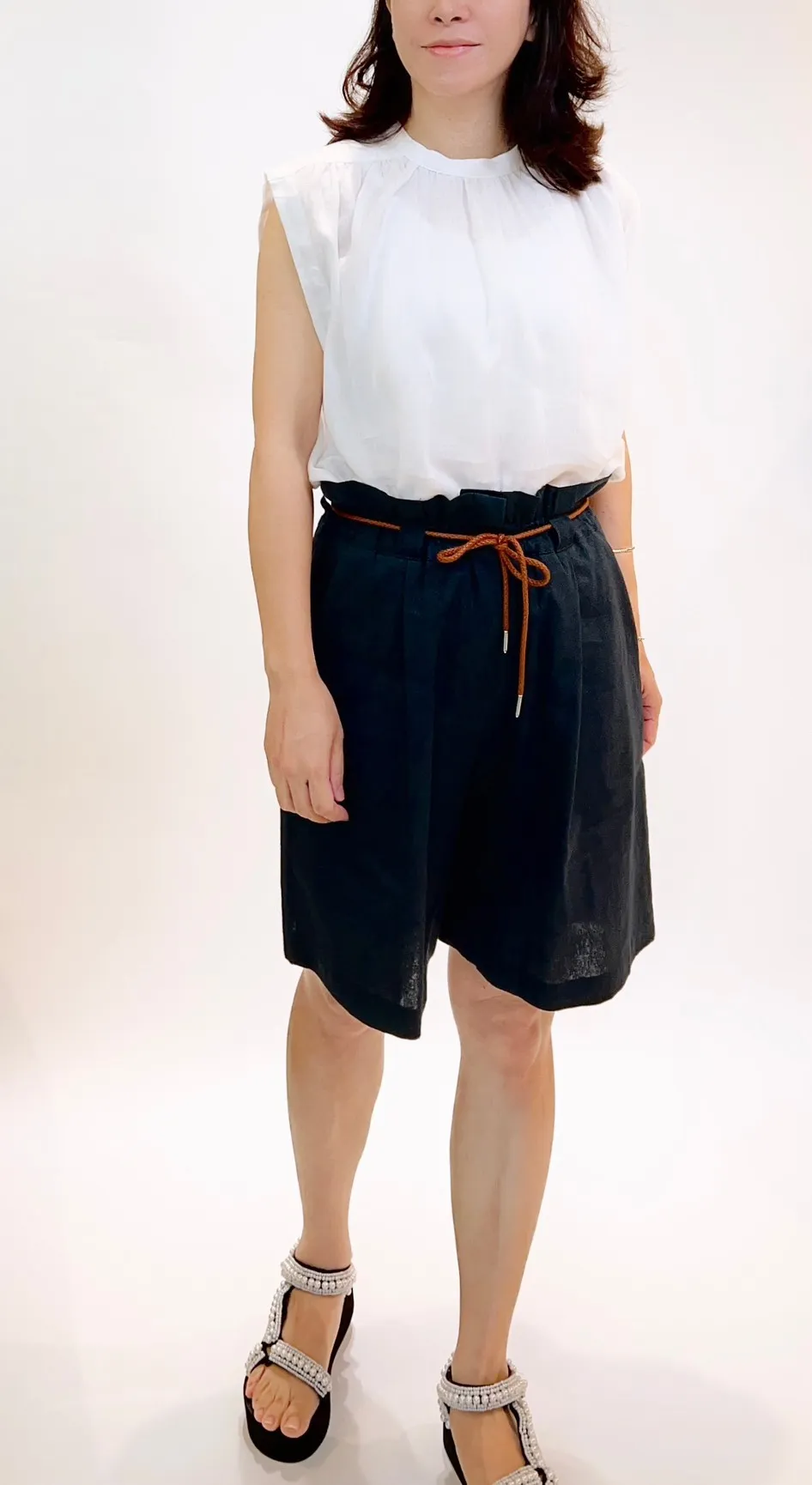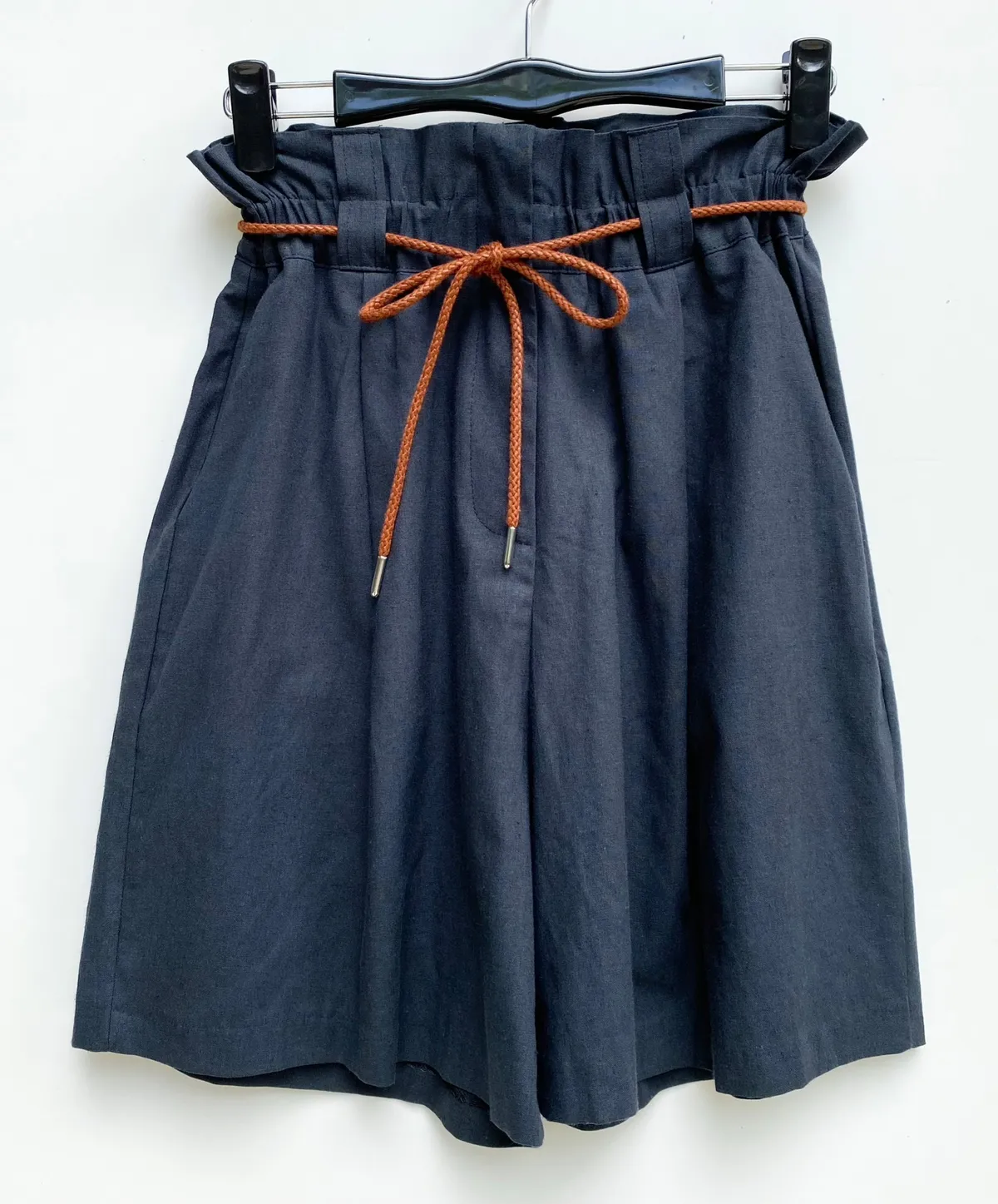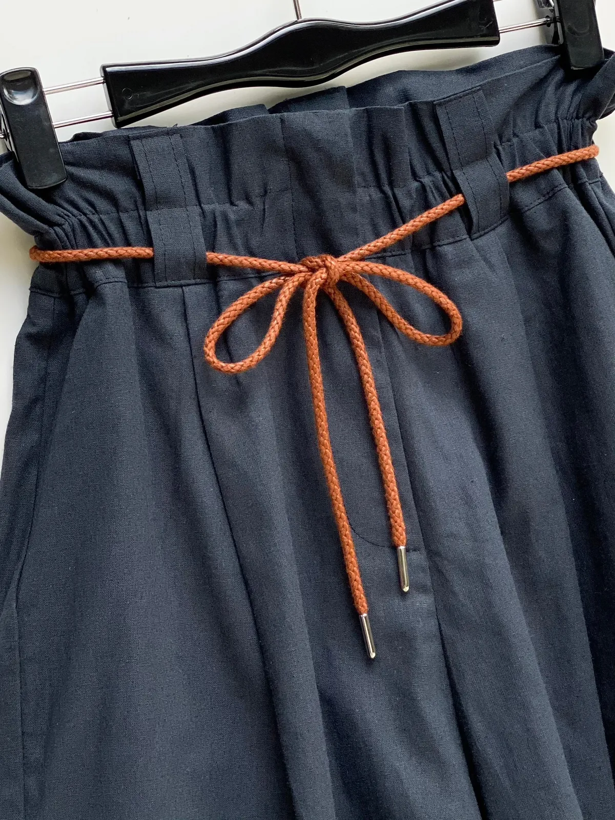 抽繩亞麻五分寬褲