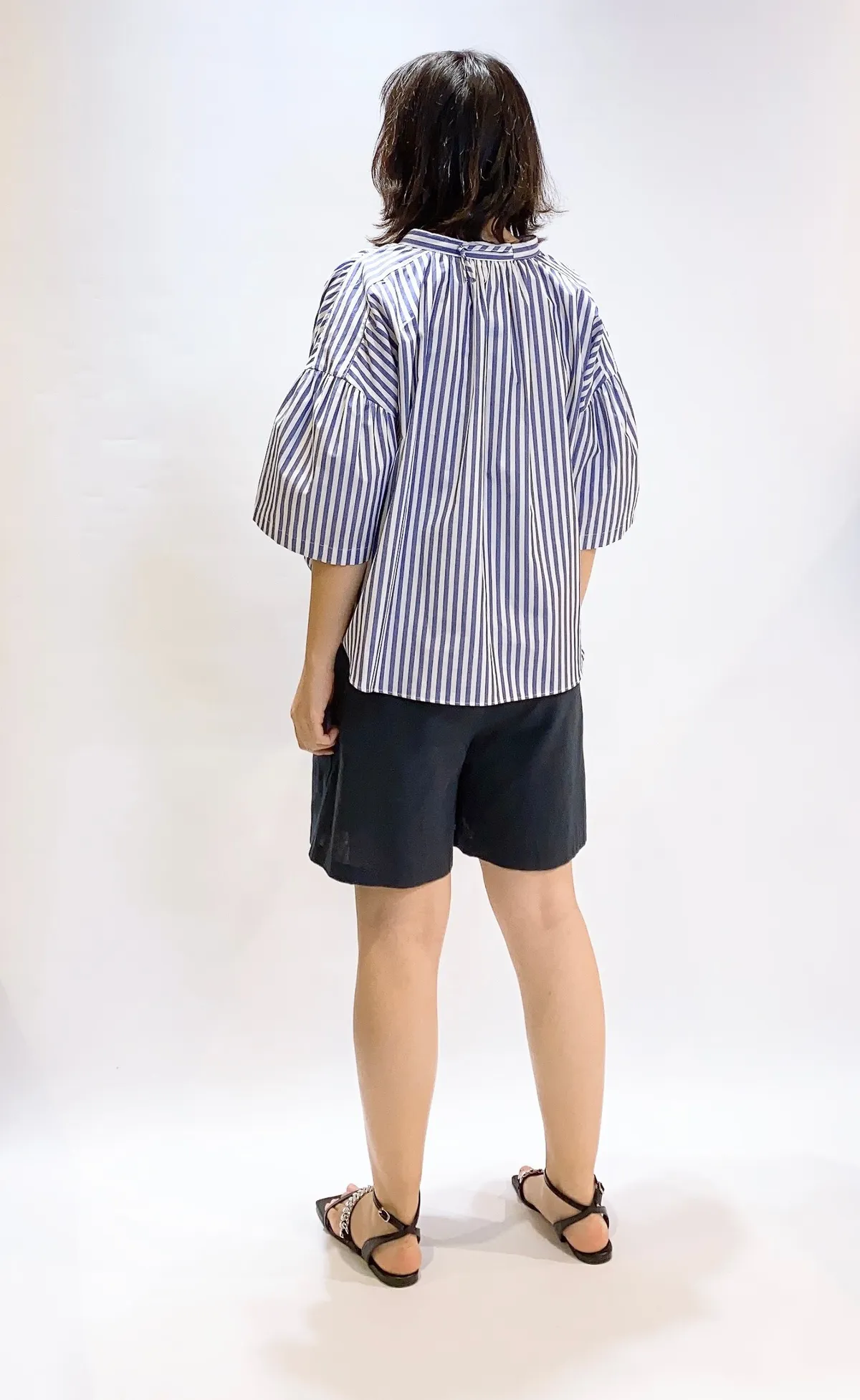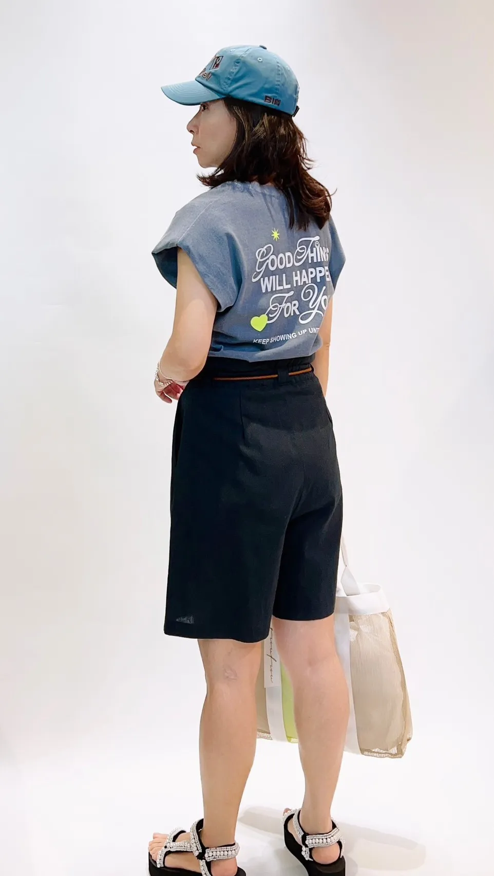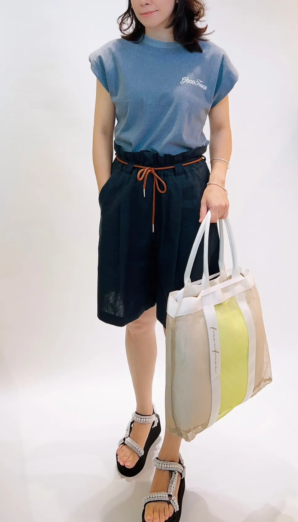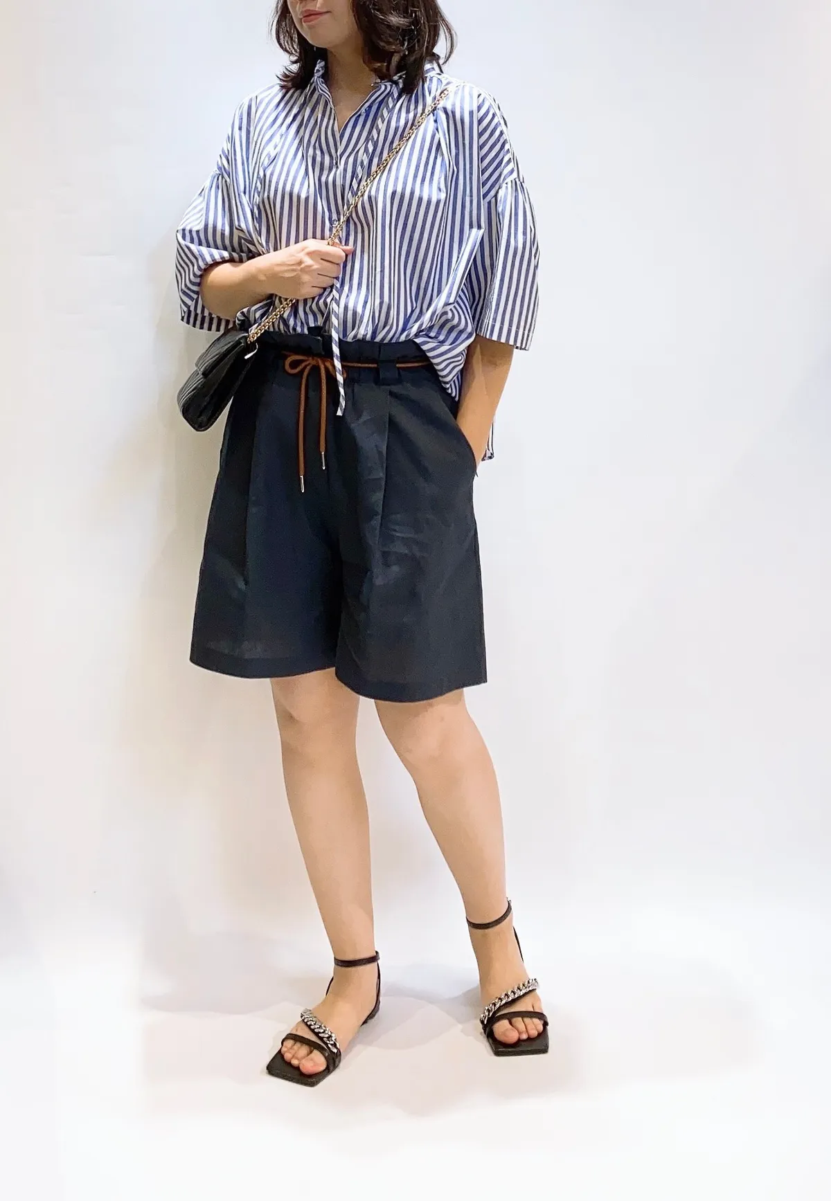 抽繩亞麻五分寬褲