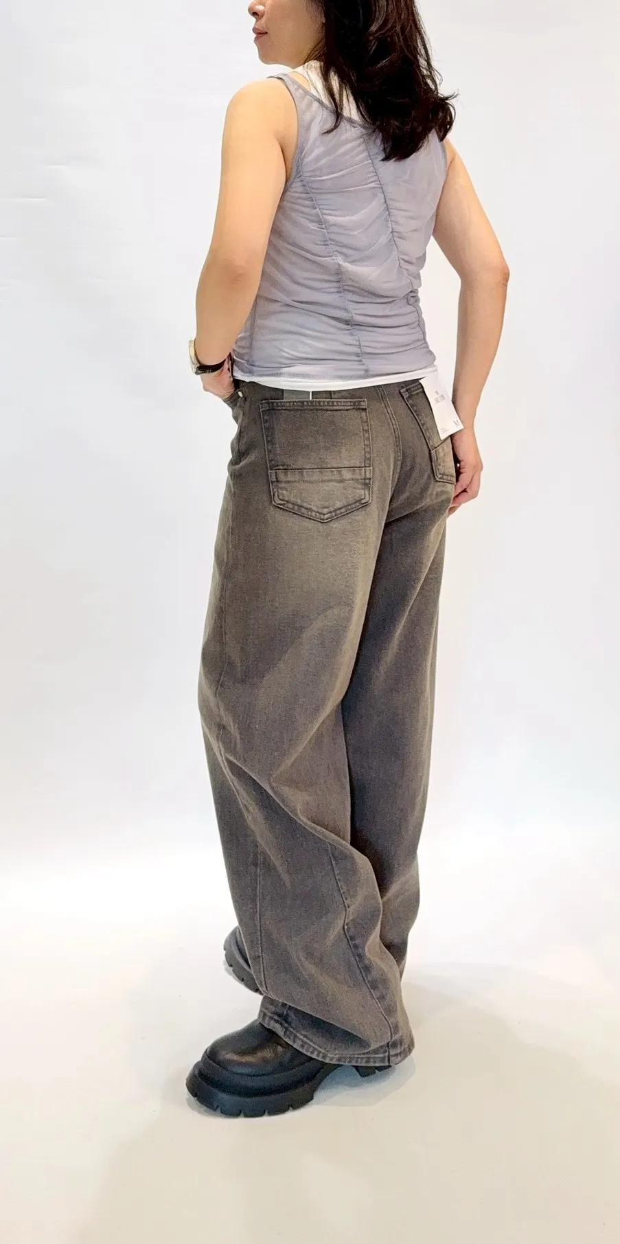 刷色傘兵牛仔寬褲