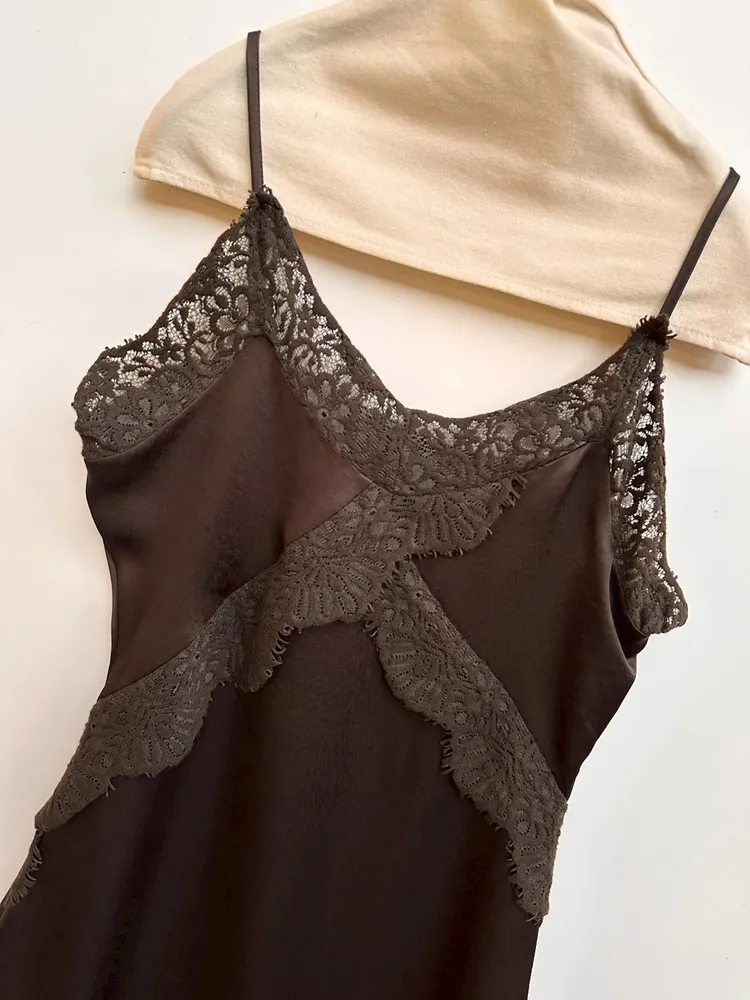 蕾絲不規則側邊背心裙