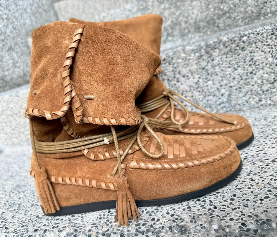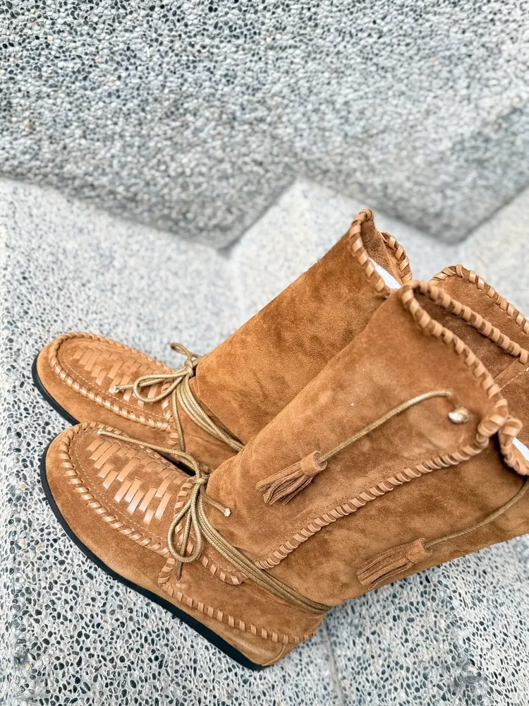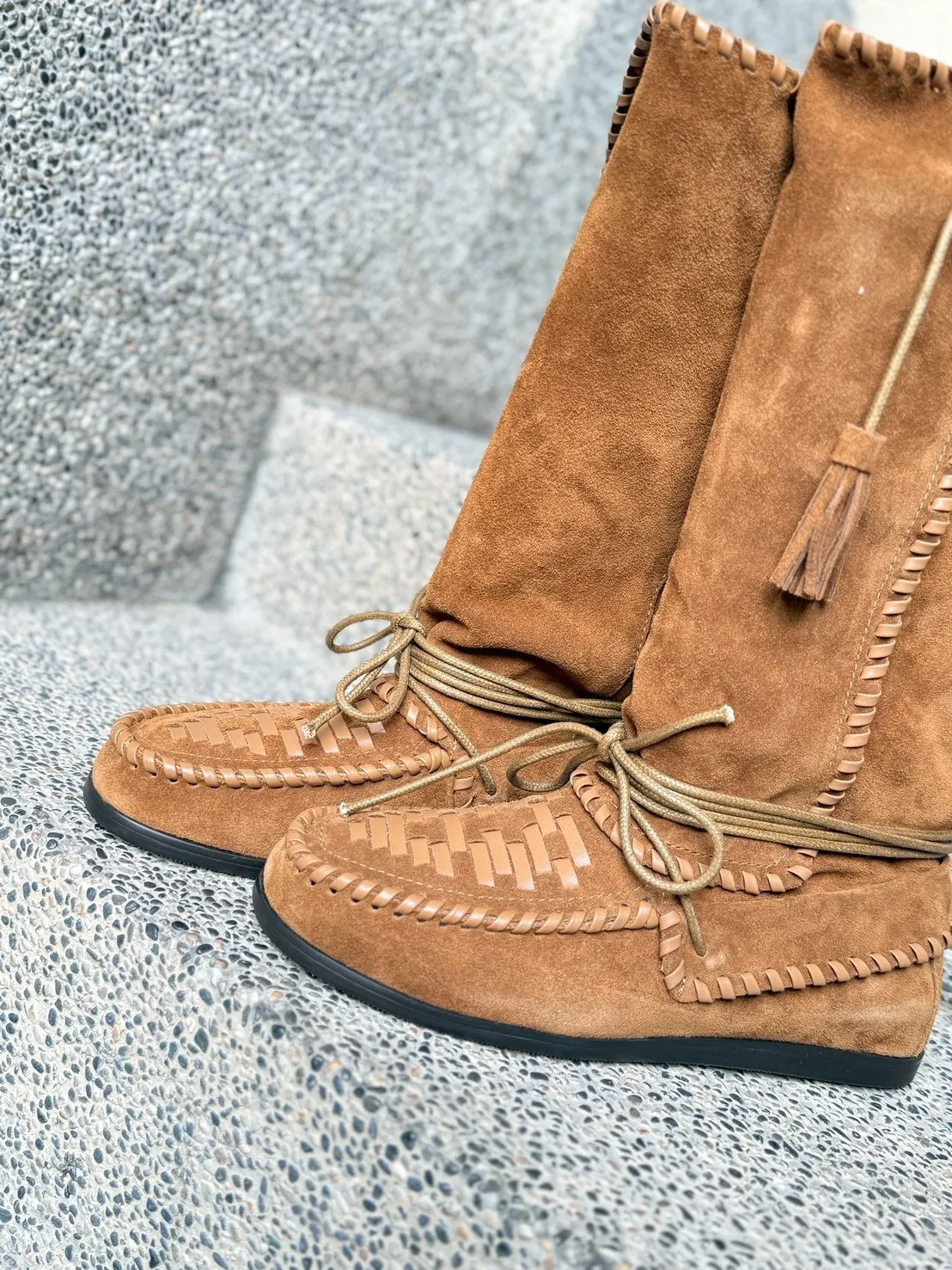 流蘇波面米亞風中筒靴