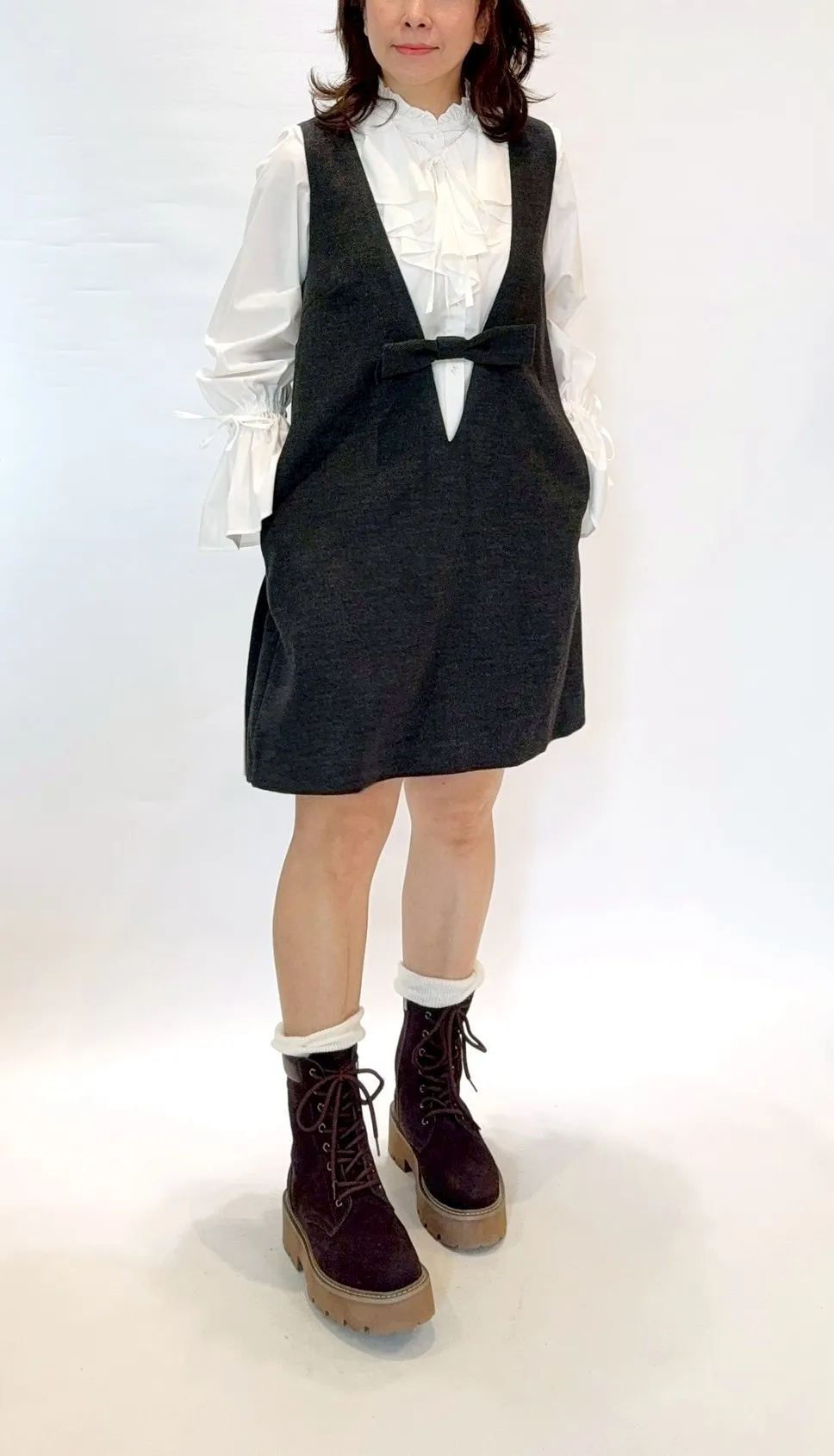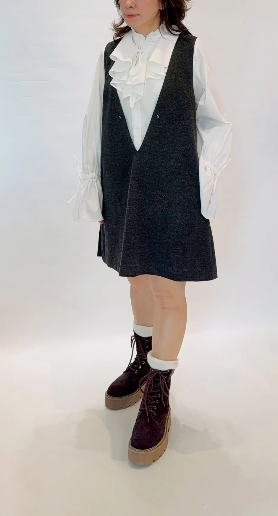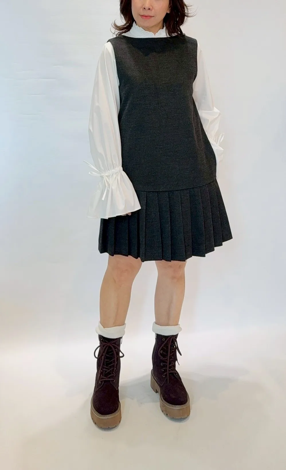 2way大v領百褶洋裝
