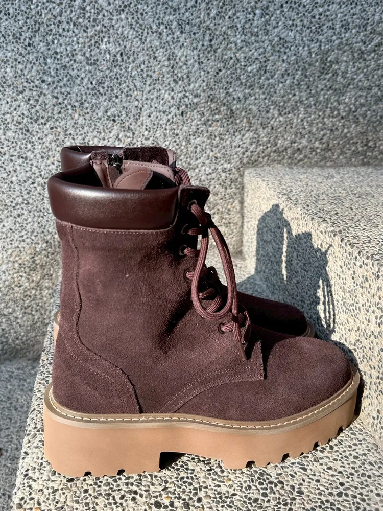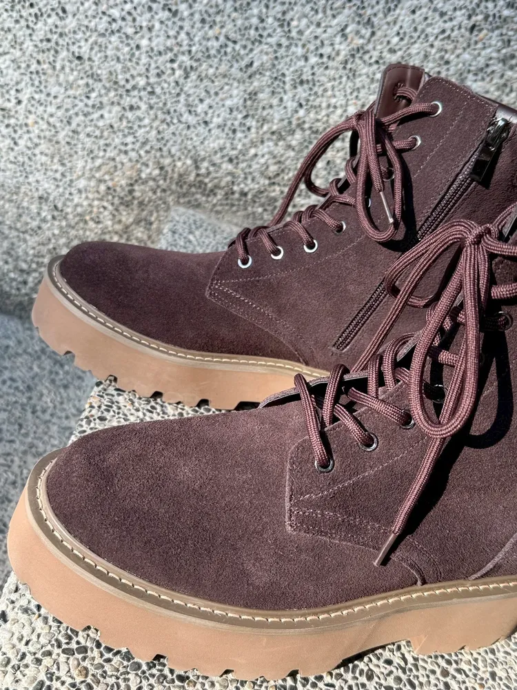 預購八孔厚底綁帶拉鍊筒靴(正常版型)
