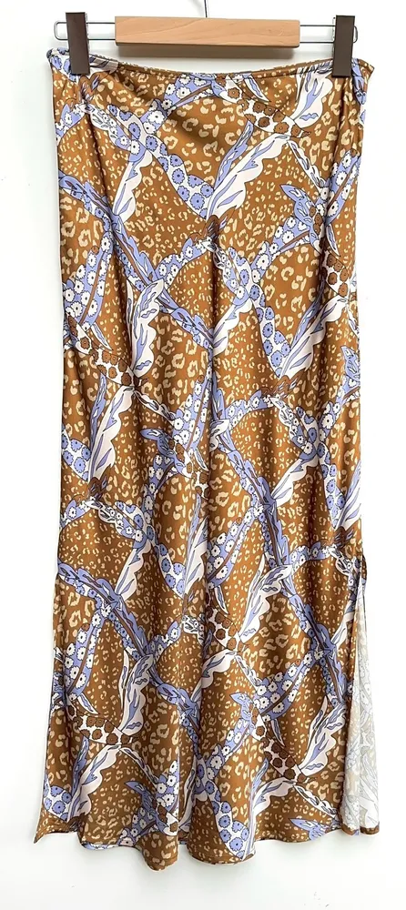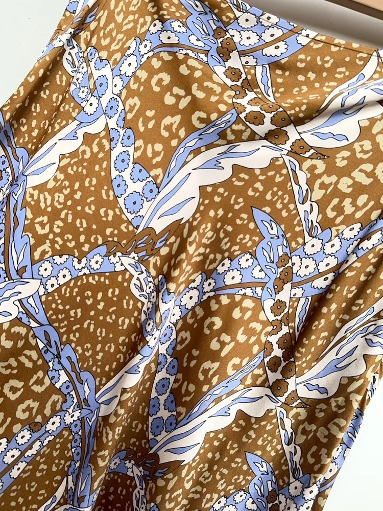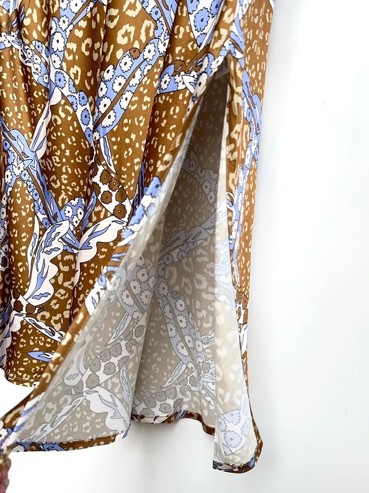 花點軟光澤開岔長裙