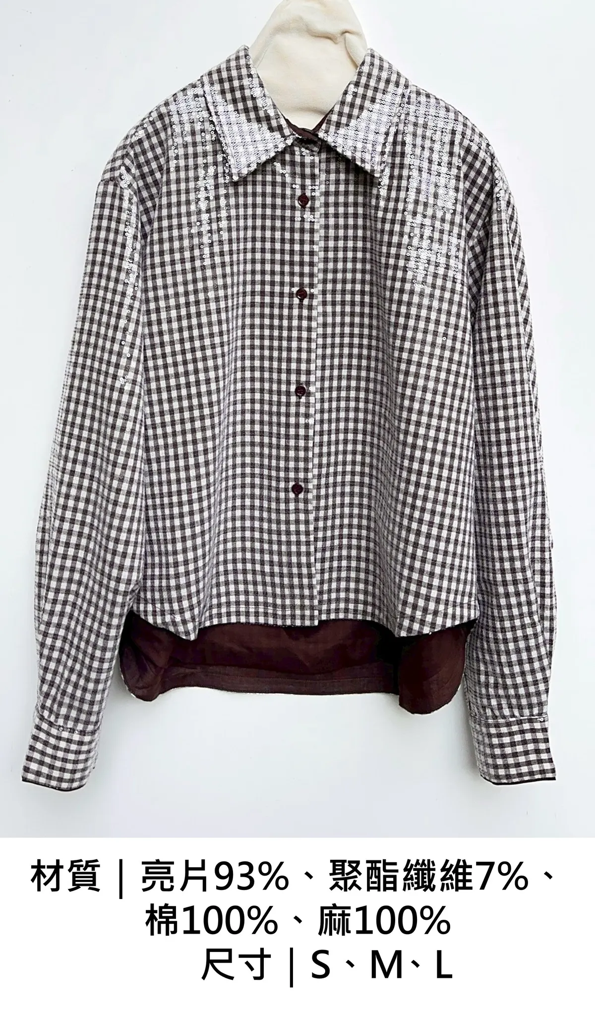 | S、M、L | 詳細尺寸請私訊官方Line/粉絲專頁 | 亮片93%、聚酯纖維7%、棉100%、麻100% | 155CM/53KG |