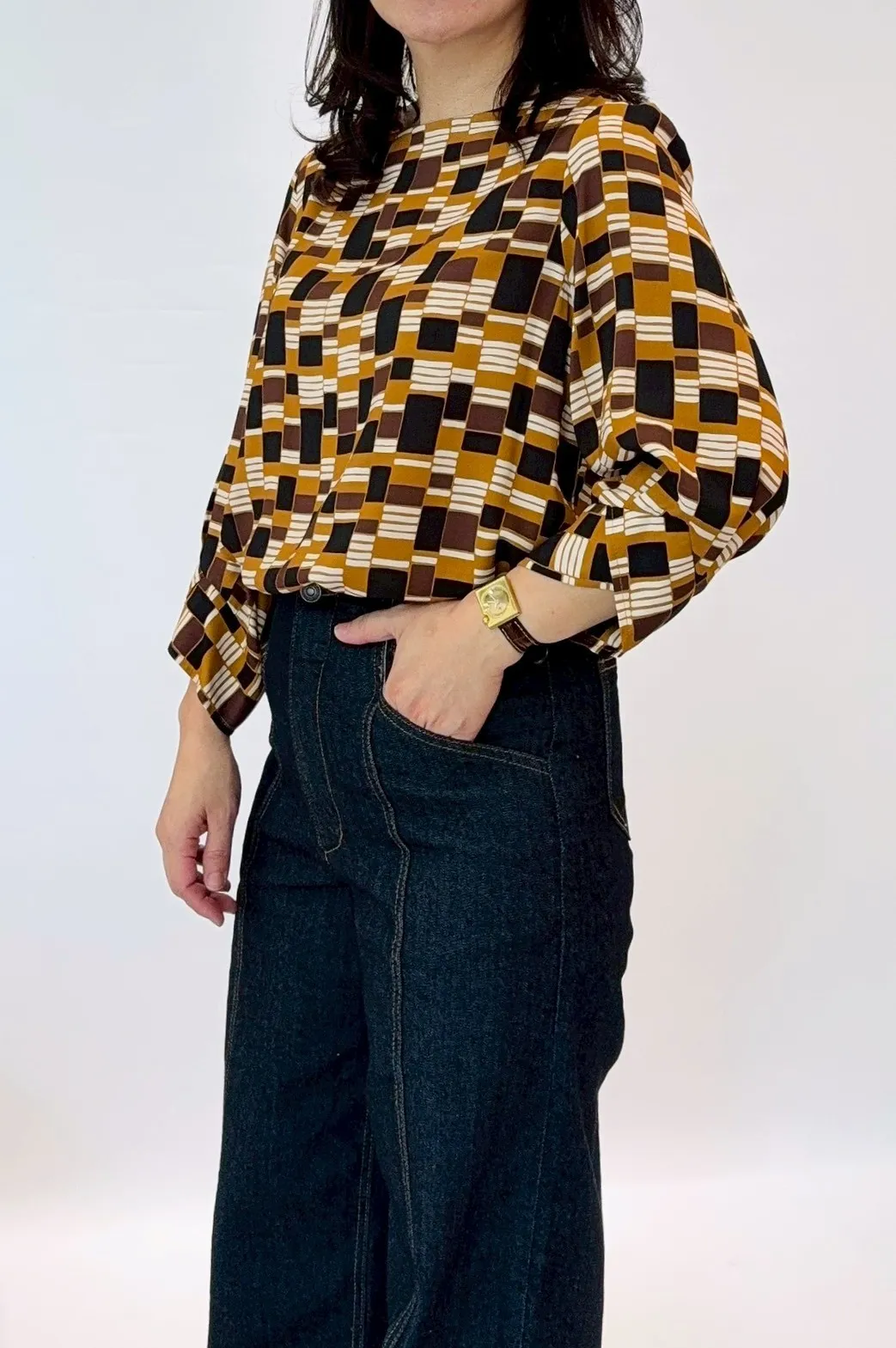 袖口復古幾何圖上衣