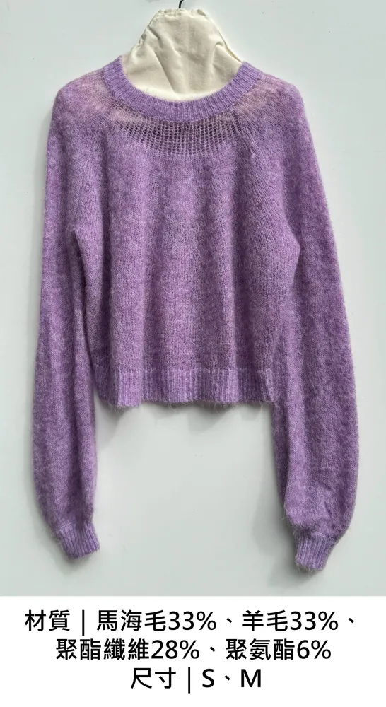 | S、M | 詳細尺寸請私訊官方Line/粉絲專頁 | 馬海毛33%、羊毛33%、聚酯纖維28%、聚氨酯6% | 155CM/53KG |